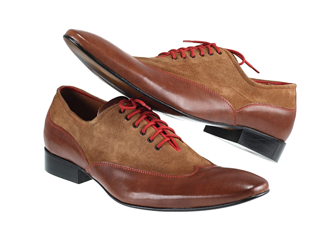 Obuwie sznurowane, wykonane ze skór bydlęcych/skóra+zamsz