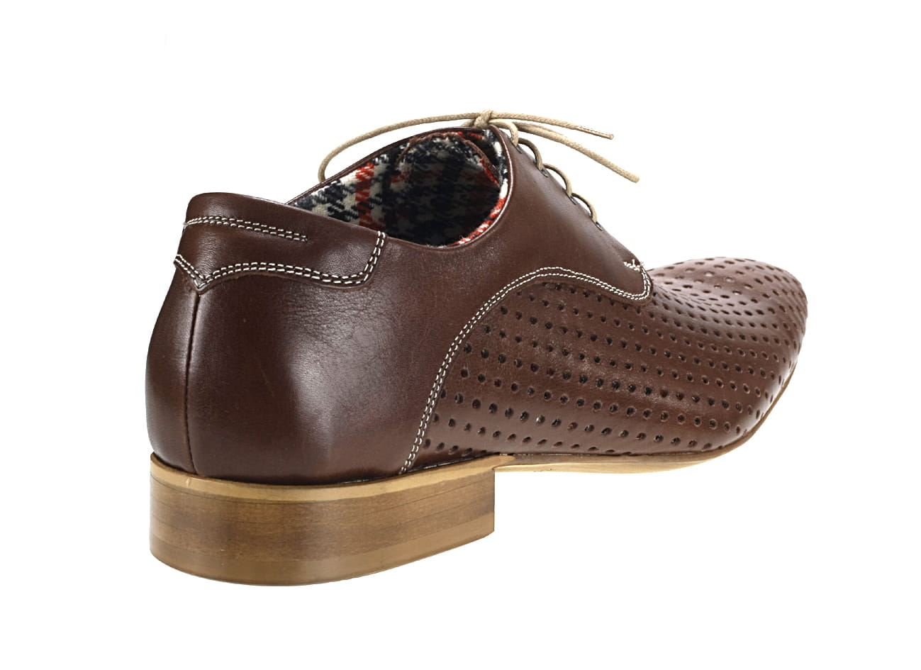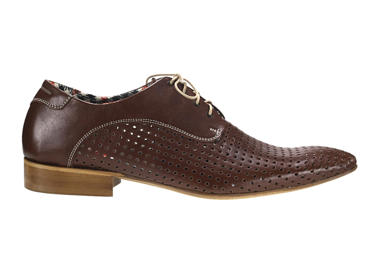 Casual brązowe półbuty sznurowane skórzane perforowane [MODEL: 899-36 Brown arcadia]