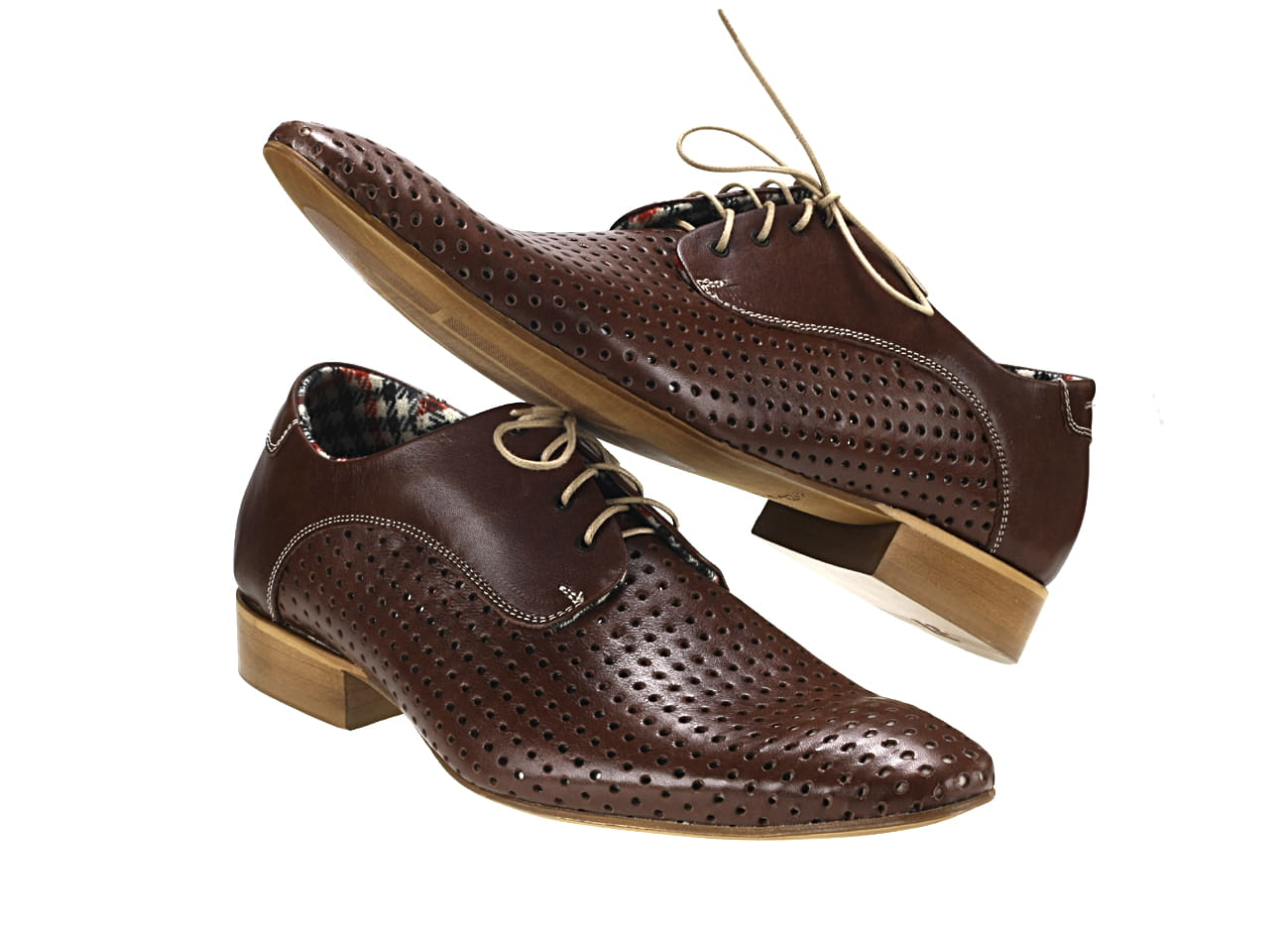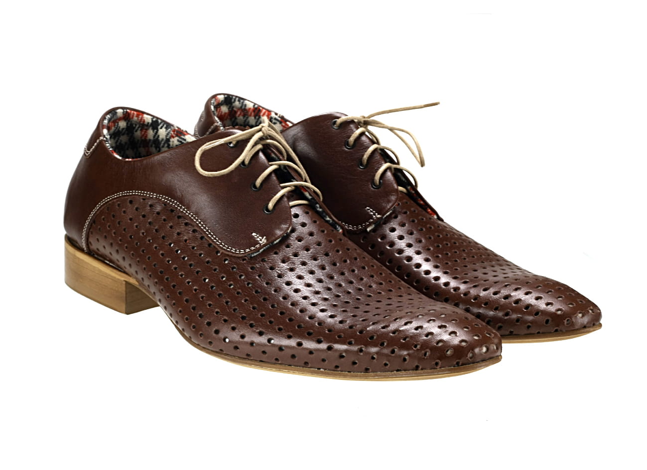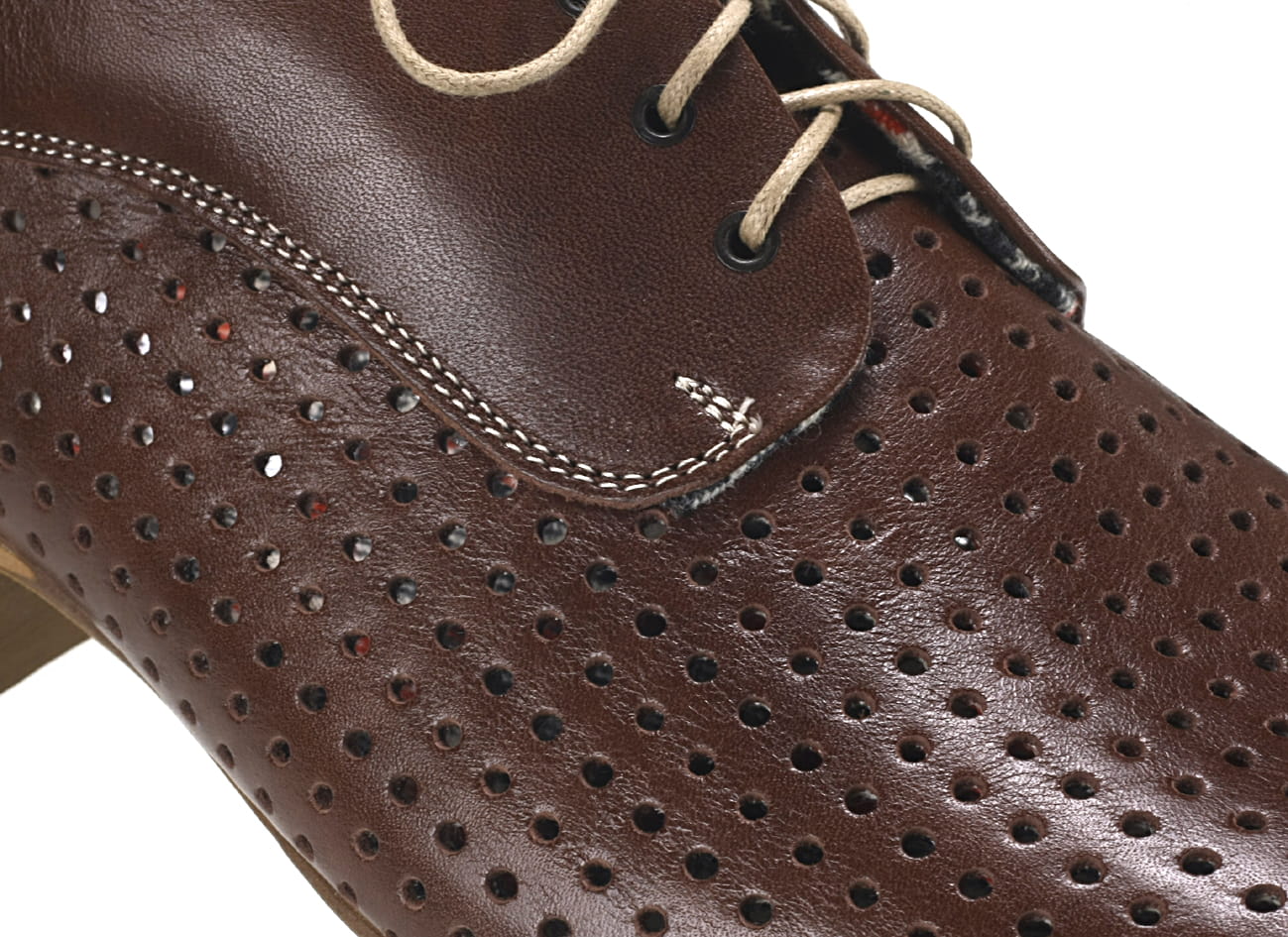Obuwie sznurowane, wykonane z miękkiej skóry bydlęcej z dziurkowaną przyszwą
