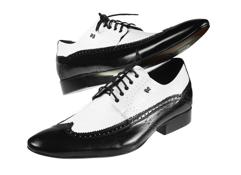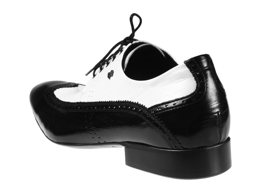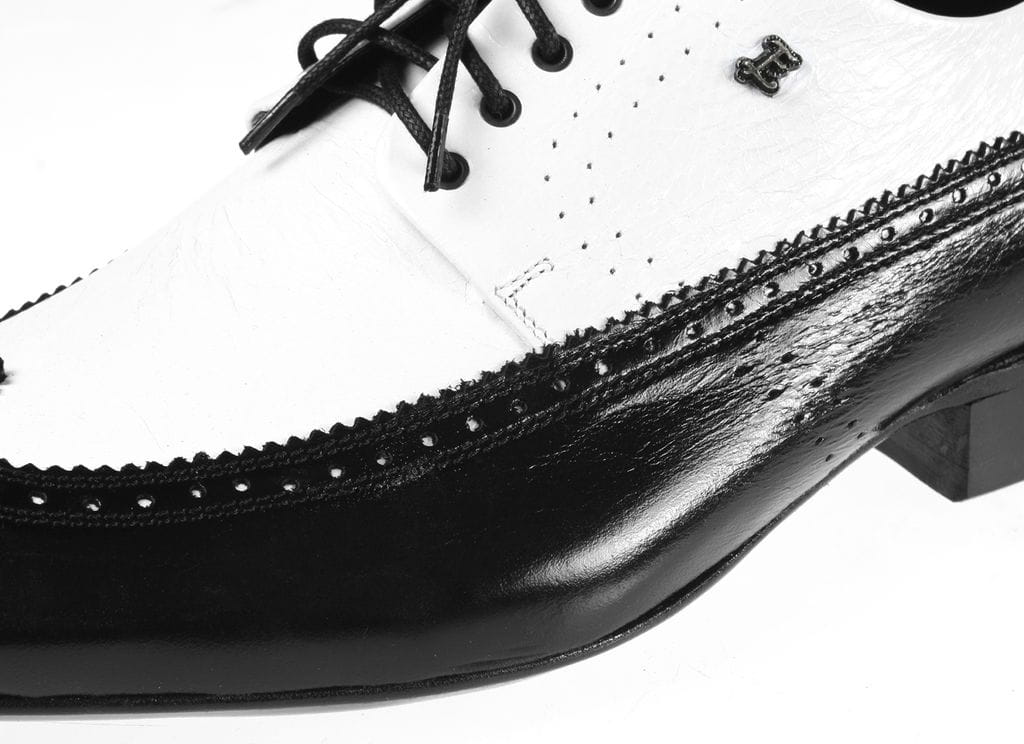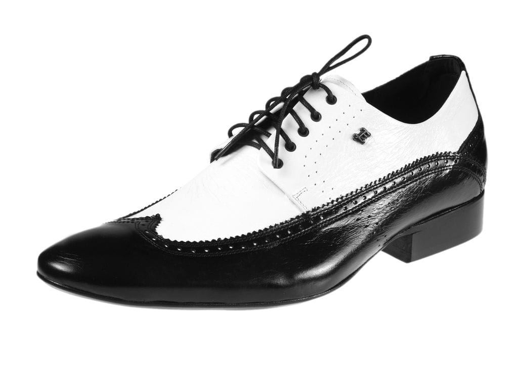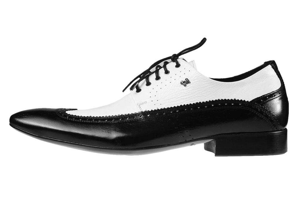 Zapytaj o Eleganckie buty męskie szkoty czarne białe sznurowane skórkowe alcapone [MODEL: 755-13 bianco/nero]