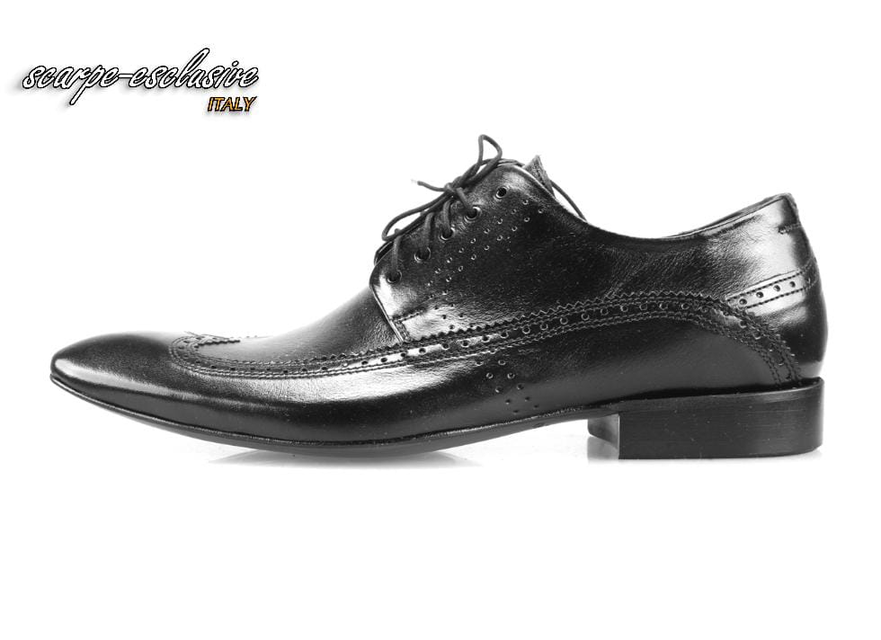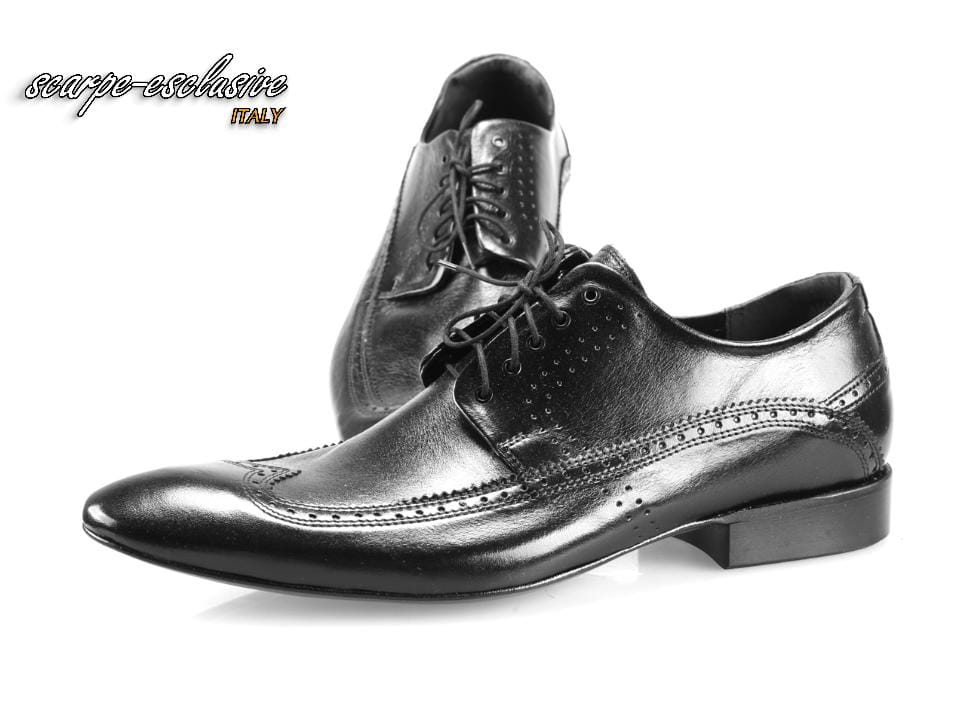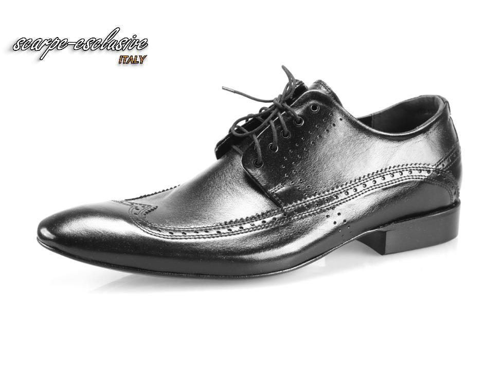 Zapytaj o Eleganckie męskie półbuty czarne szkoty sznurowane skóra licowa [MODEL:755-01 Nero riva]