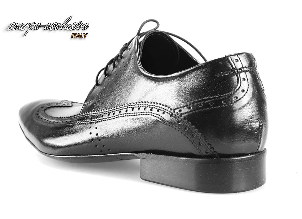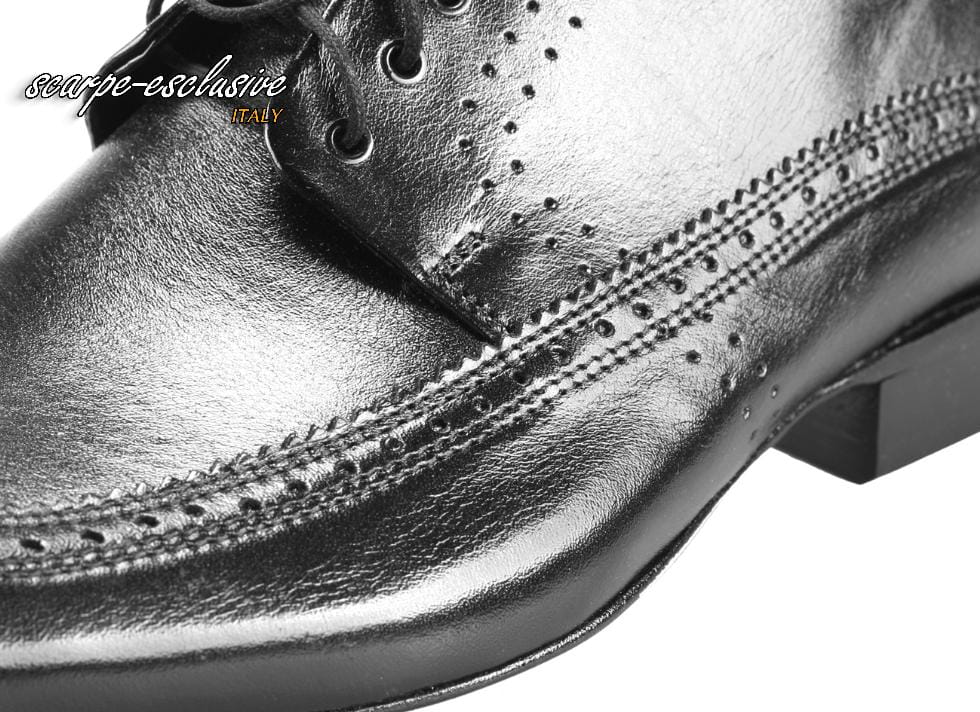 Eleganckie męskie półbuty czarne szkoty sznurowane skóra licowa [MODEL:755-01 Nero riva]