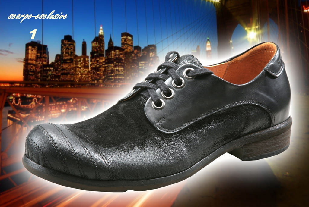 Glany czarne niskie sznurowane męskie skórzane [MODEL:762-01 camoscio antico]