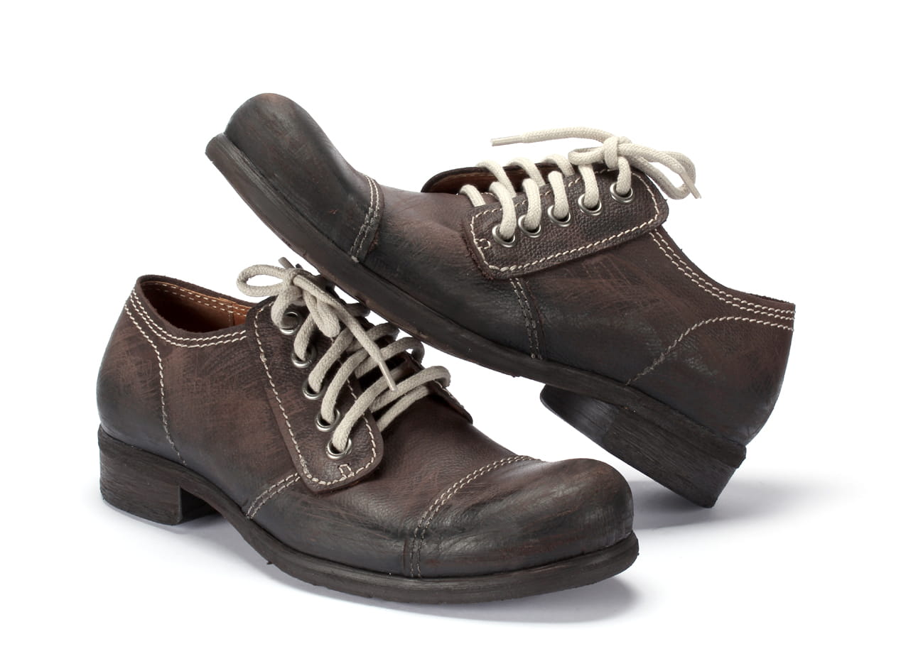 Obuwie z kolekcji Colin Farrell charakteryzuje się wykończeniem „old”z przebarwieniami i przetarciami