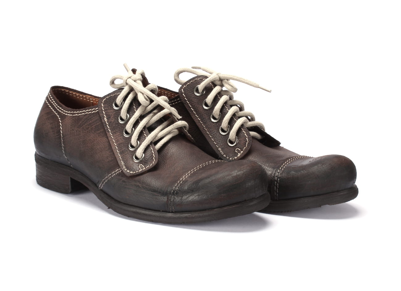 Glany włoskie niskie skórzane brązowe sznurowane old drapane przecierane [MODEL: 729-03 Buro molto antico]