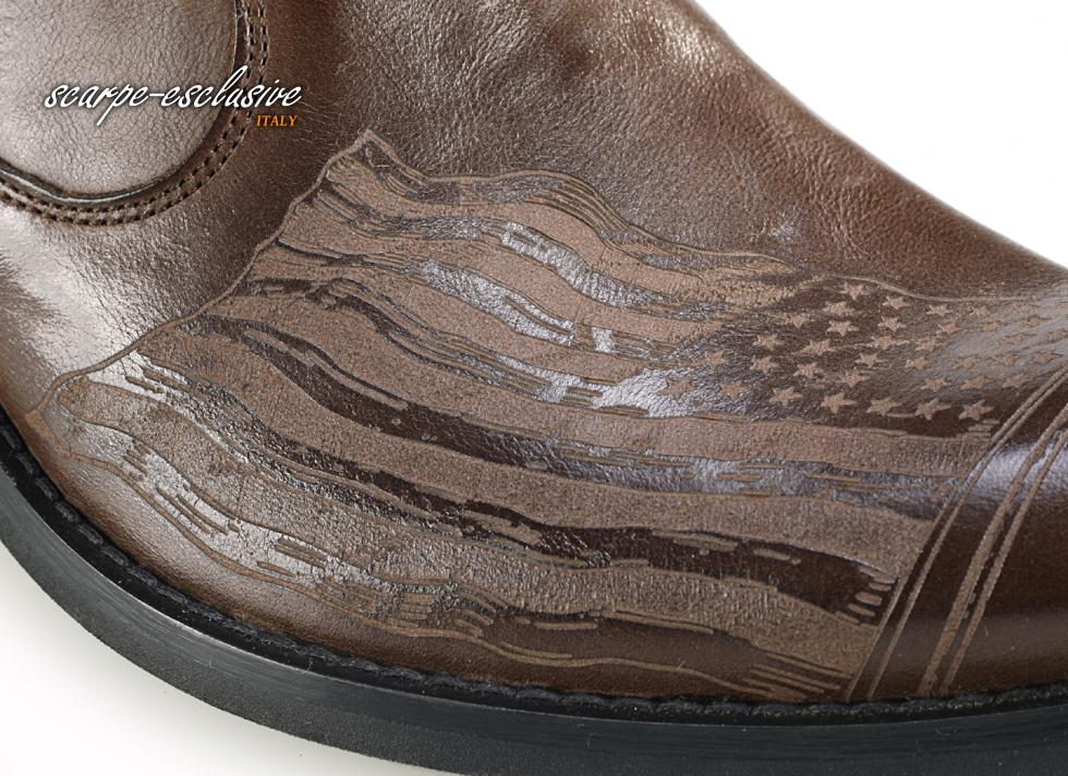 Kowbojki brązowe włoskie skórzane wysokie wzory laser old buty na motor motocyklowe cowboy boots