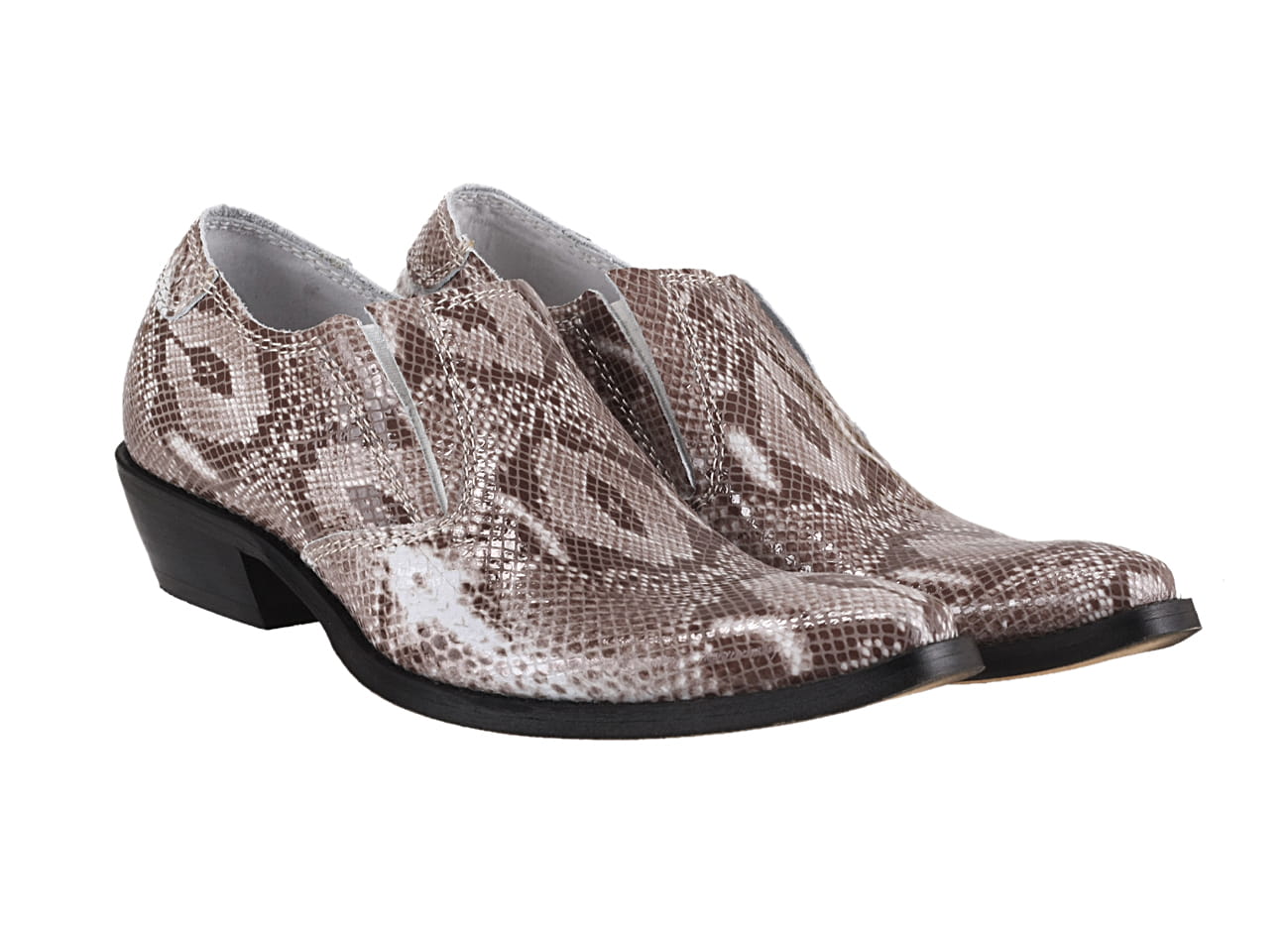 Kowbojki męskie skórzane beżowe brązowe wsuwane niskie imitacja skóry węża półbuty męskie wyższy obcas