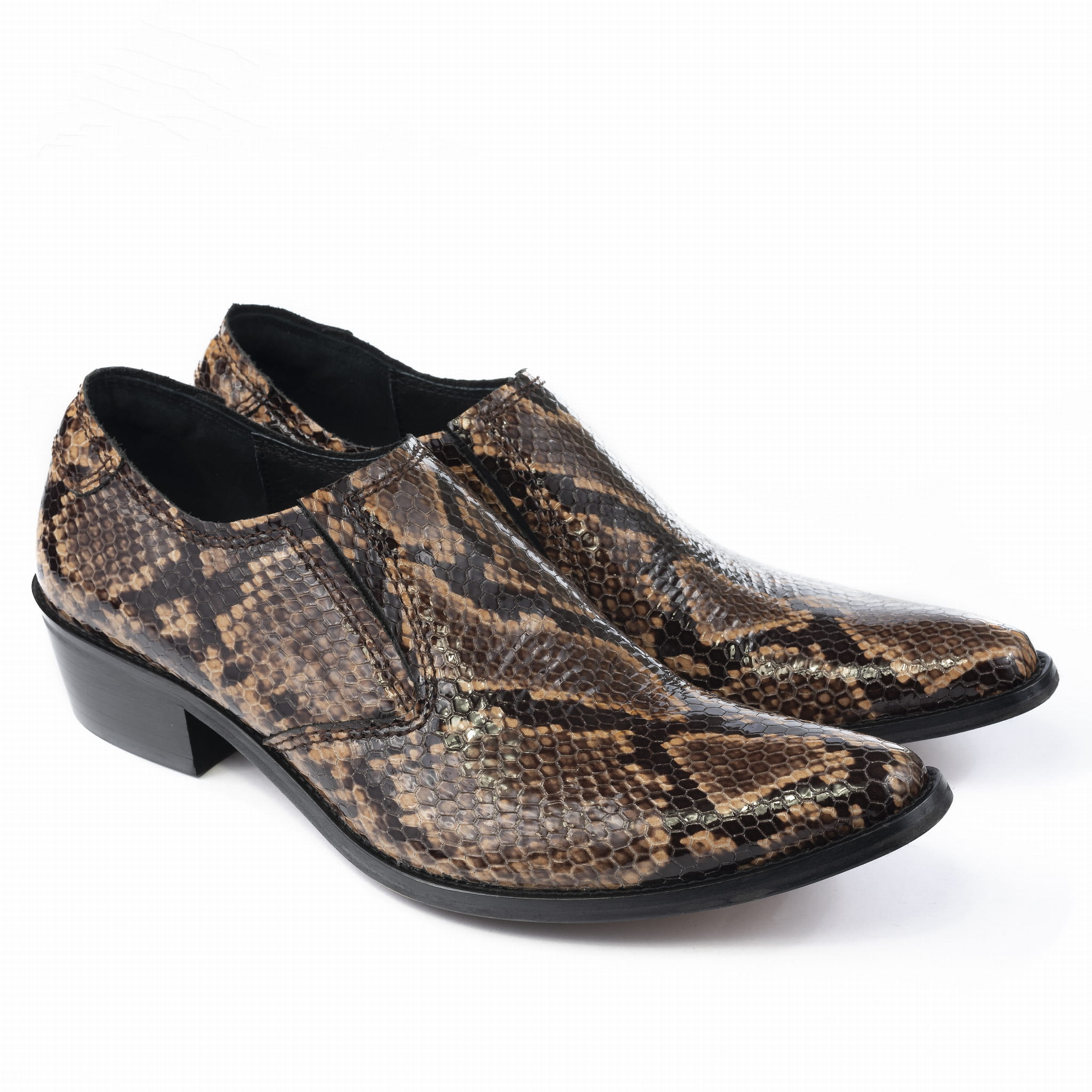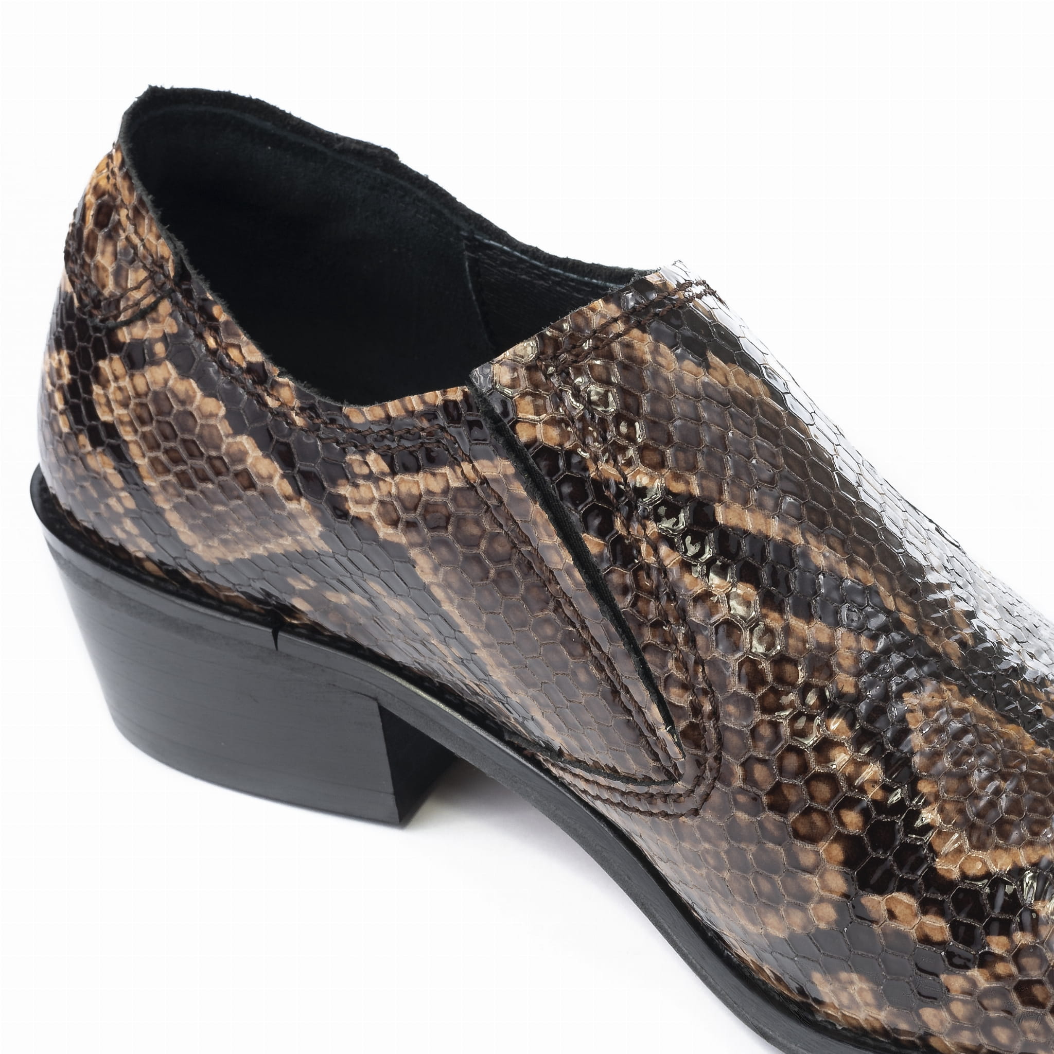 Kowbojki niskie skórzane wytłaczane podwyższony obcas brązowe czarne [MODEL: 812-79 brown]