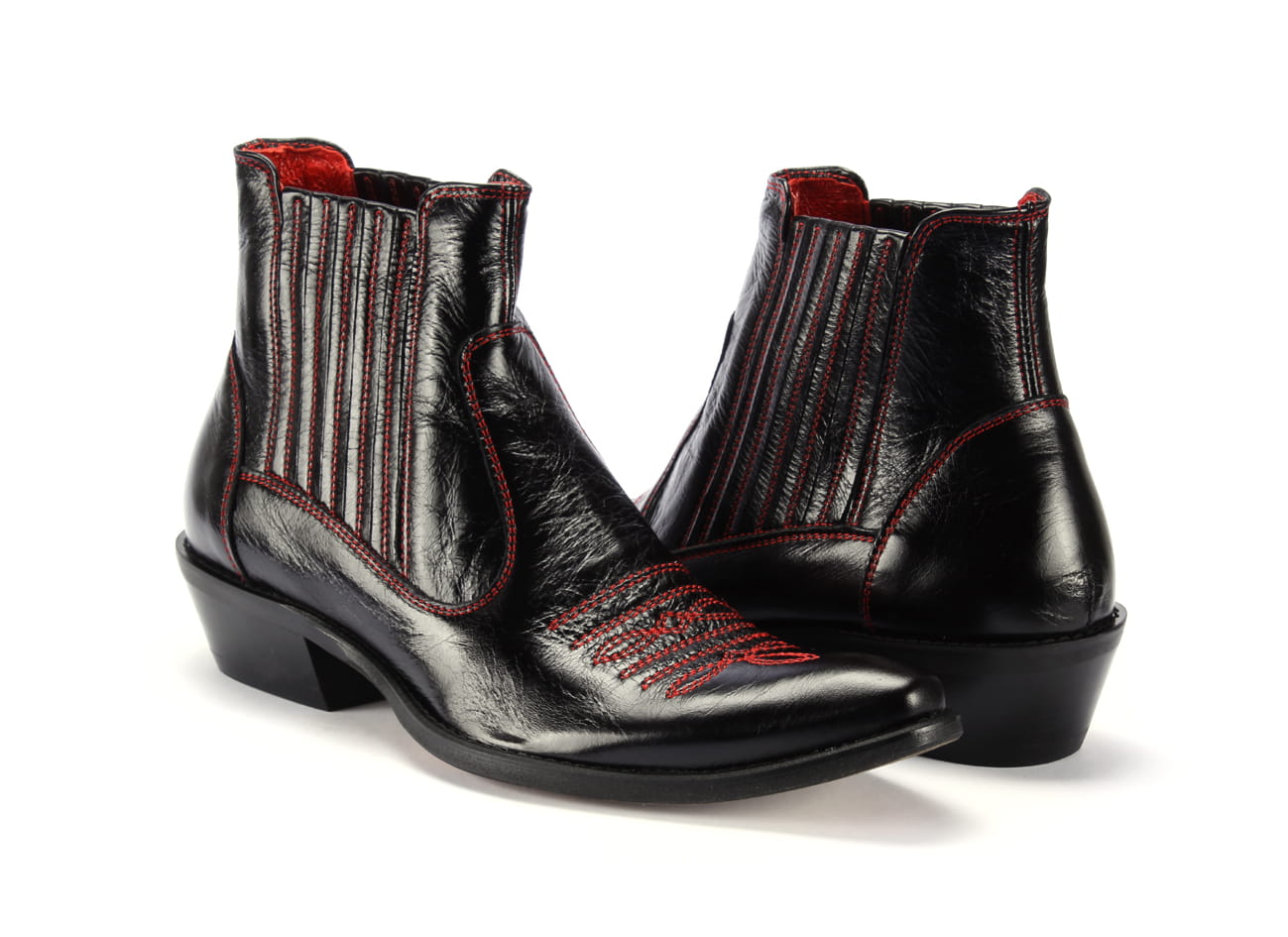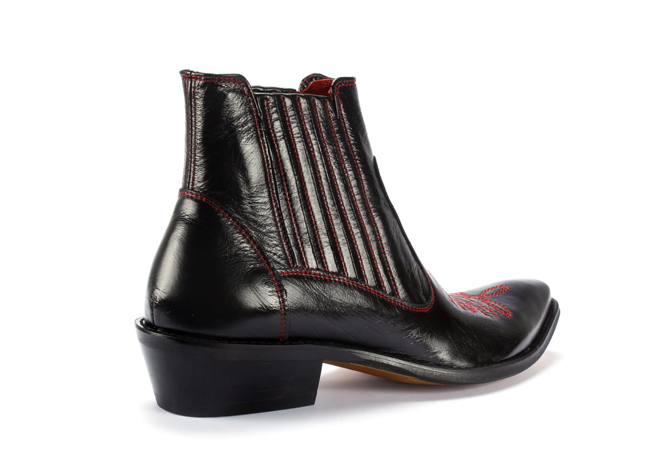 Kowbojki skórzane czarne wysokie czerwone haft ocieplane wyższy obcas buty na motor [MODEL: 810-01 Rosso-nero riva]