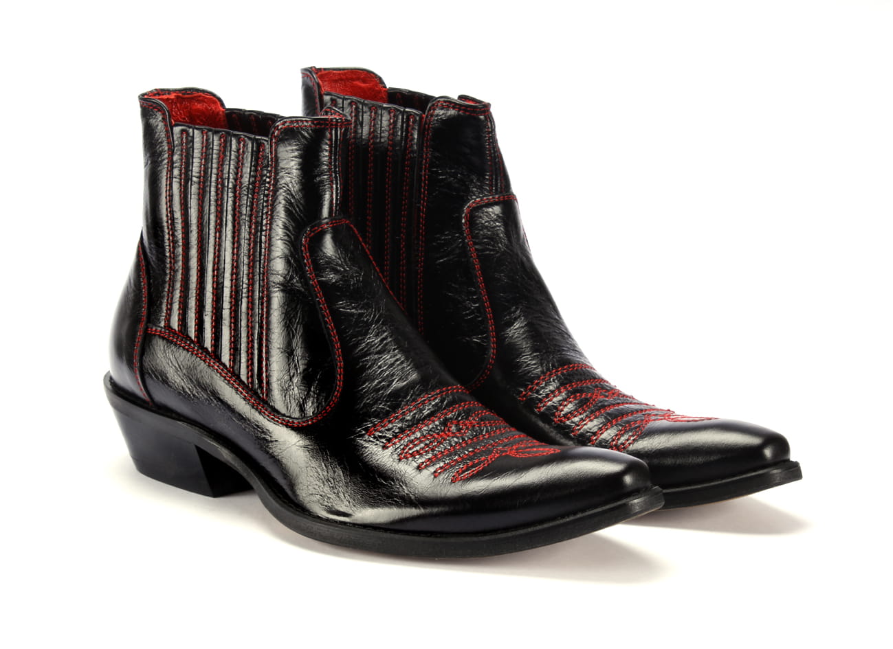 Zapytaj o Kowbojki skórzane czarne wysokie czerwone haft ocieplane wyższy obcas buty na motor [MODEL: 810-01 Rosso-nero riva]