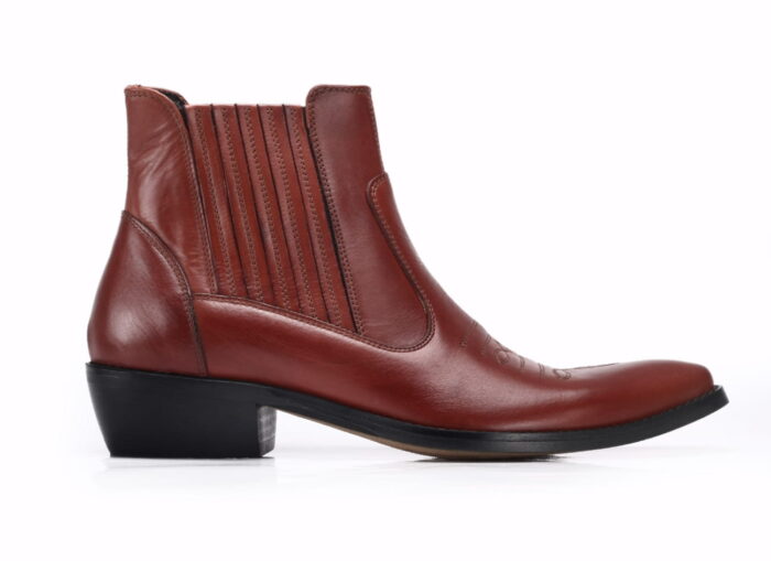 Model obuwia wsuwany z gumką po bokach zapewnia wygodne ubieranie oraz idealne dopasowanie do stopy. Wysokość cholewy z obcasem to 17 cm, szerokość u góry to 13 cm. Cholewka zdobiona ozdobnym haftem.