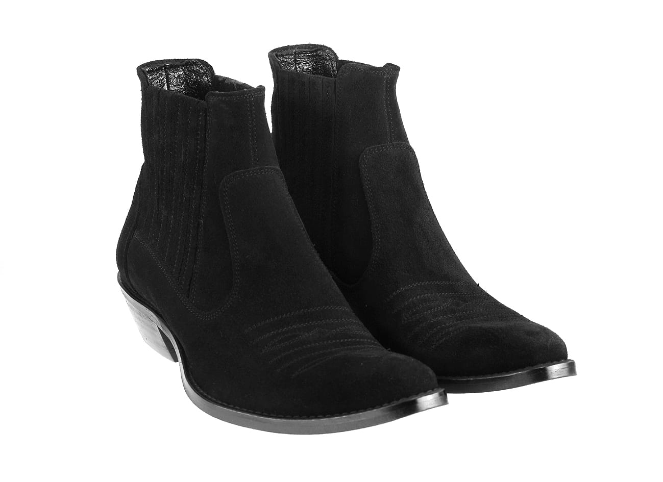Kowbojki włoskie męskie wysokie zamszowe haft [MODEL: 810-01 Nero Camoscio]