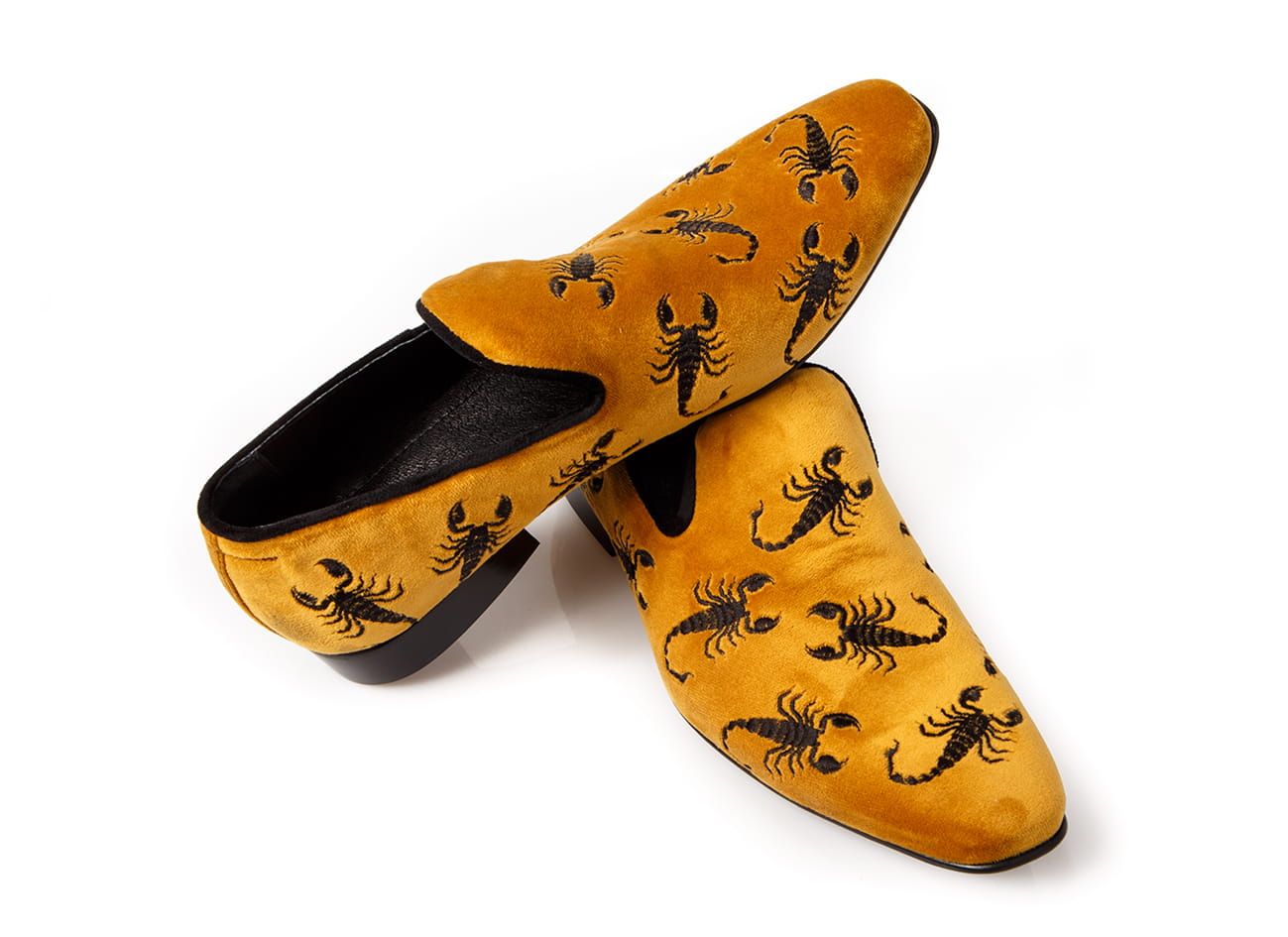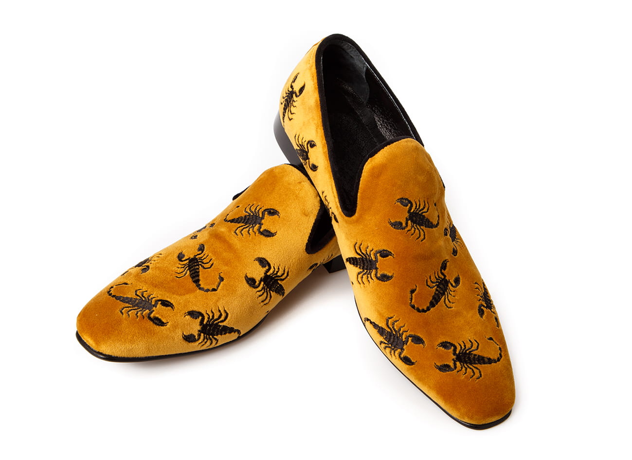 Wygodne lordsy mokasyny męskie skórzane zamszowe żółte Color Trend’s musztarda wsuwane obuwie męskie buty kolorowe hafty wzory unikat new