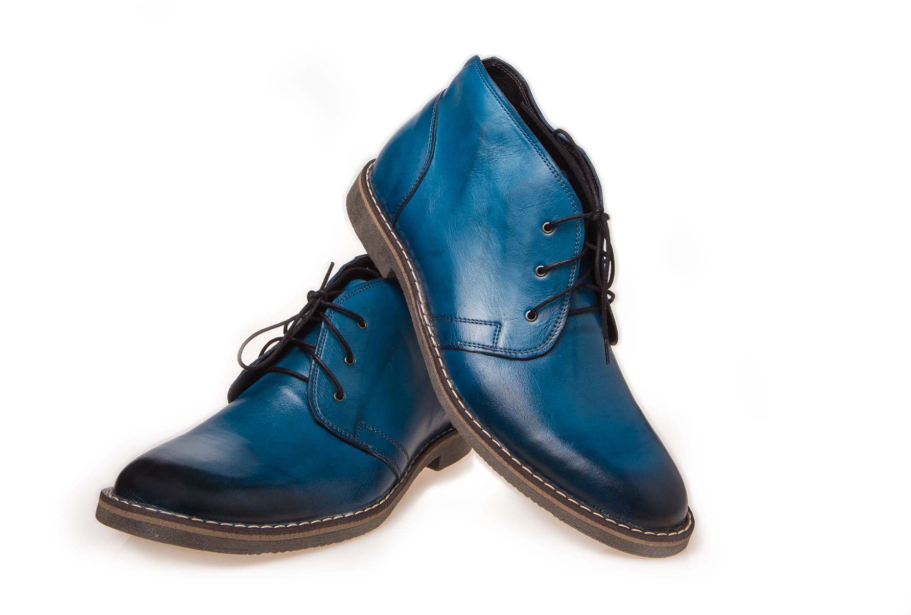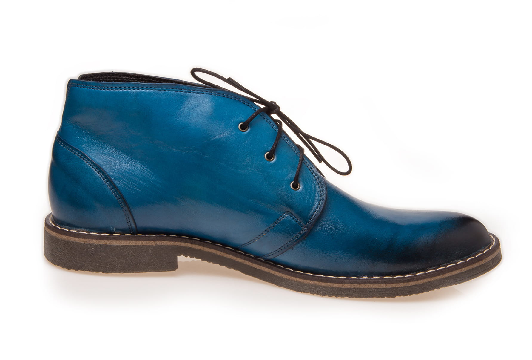 Wysokie botki męskie skórzane blue niebieskie sznurowane buty do kostki półbuty męskie sztyblety casual ręcznie malowane old new