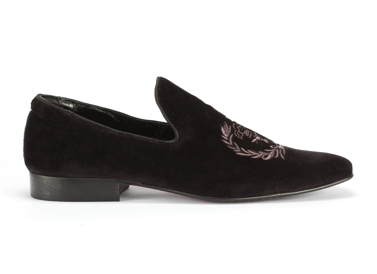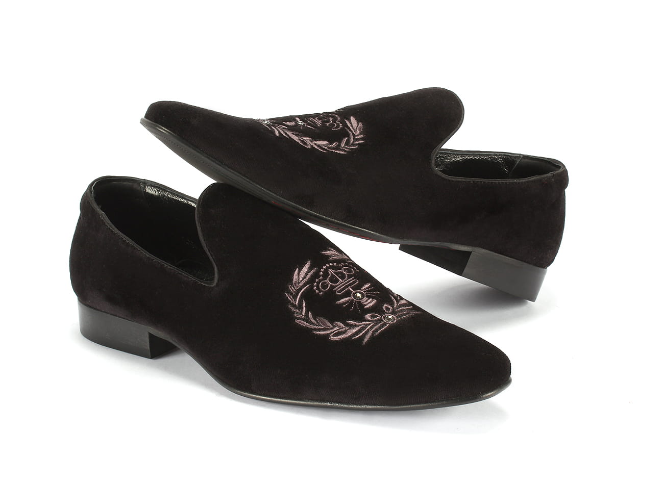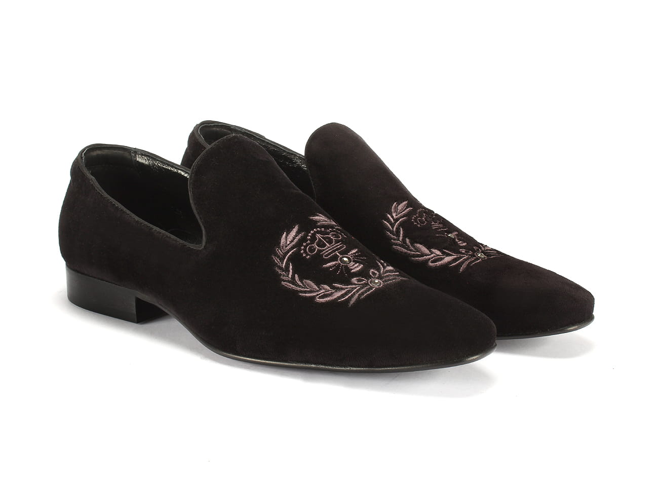 Zapytaj o Niepowtarzalne wsuwane mokasyny męskie haft aksamit 38-45 [MODEL: 1217-01 Nero herb]