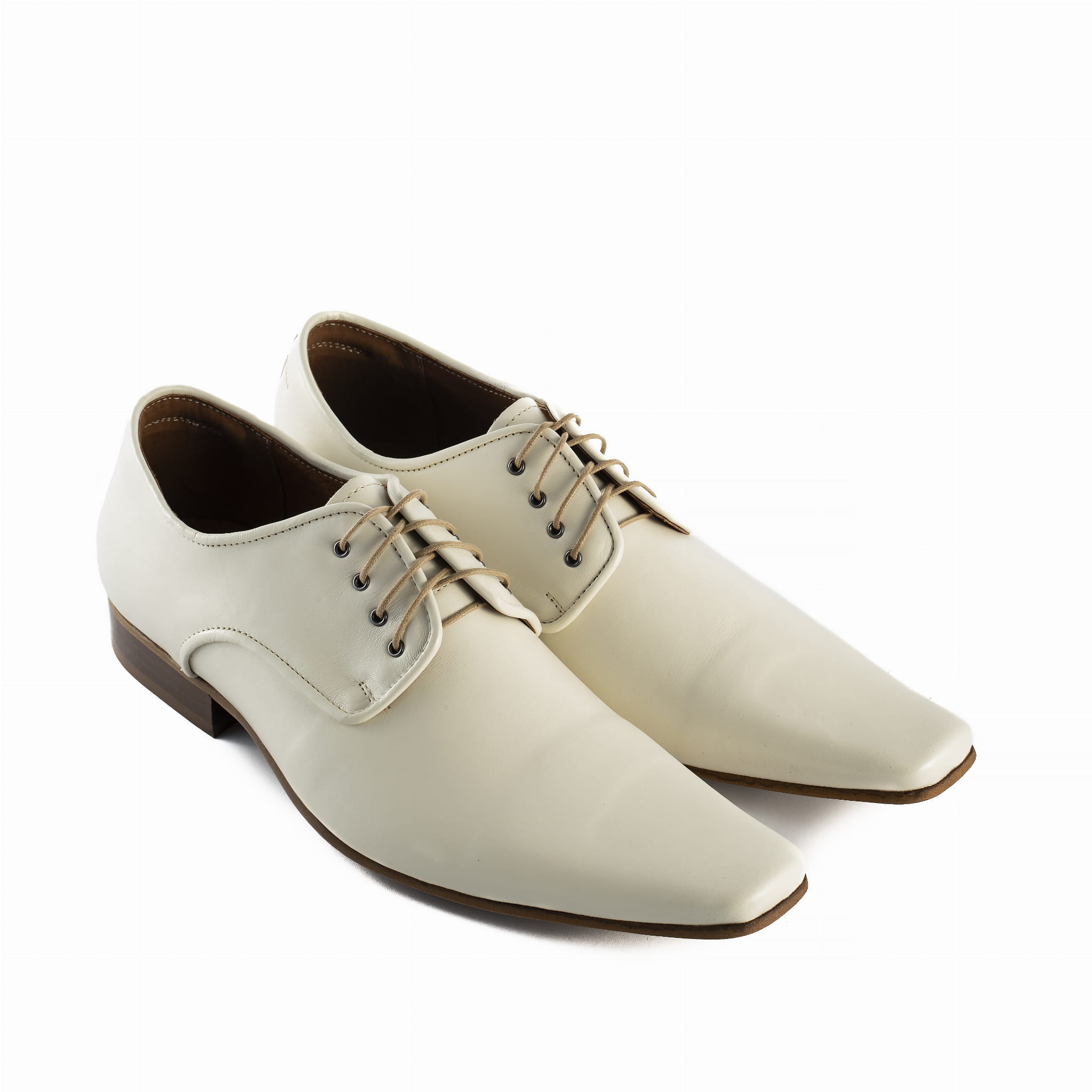 Wizytowe obuwie buty męskie skórzane półbuty męskie ecru ślub wesele skórkowe sznurowane