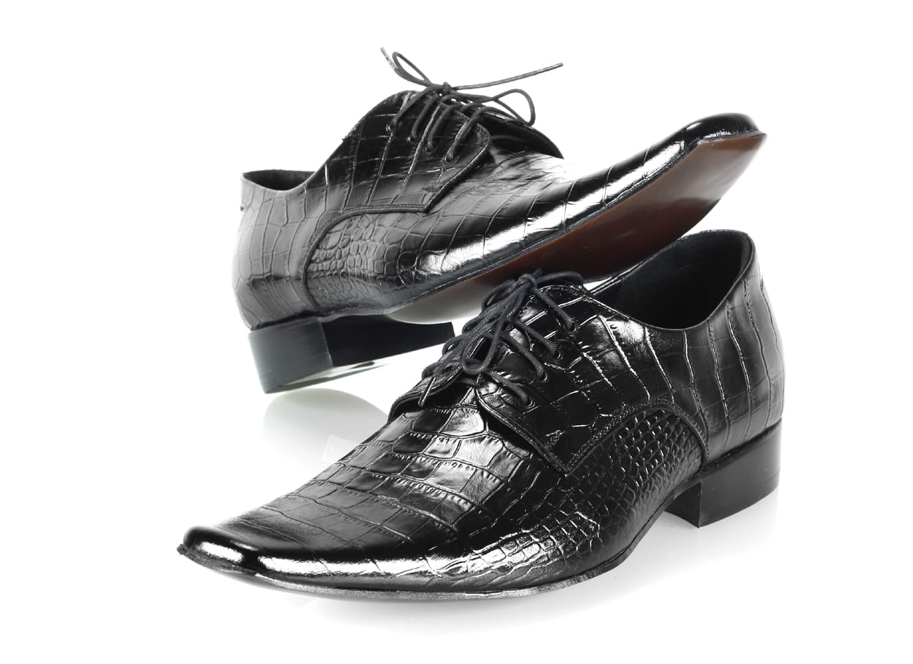 Obuwie męskie skórzane wytłaczane [MODEL: 570-01 Nero cayman]