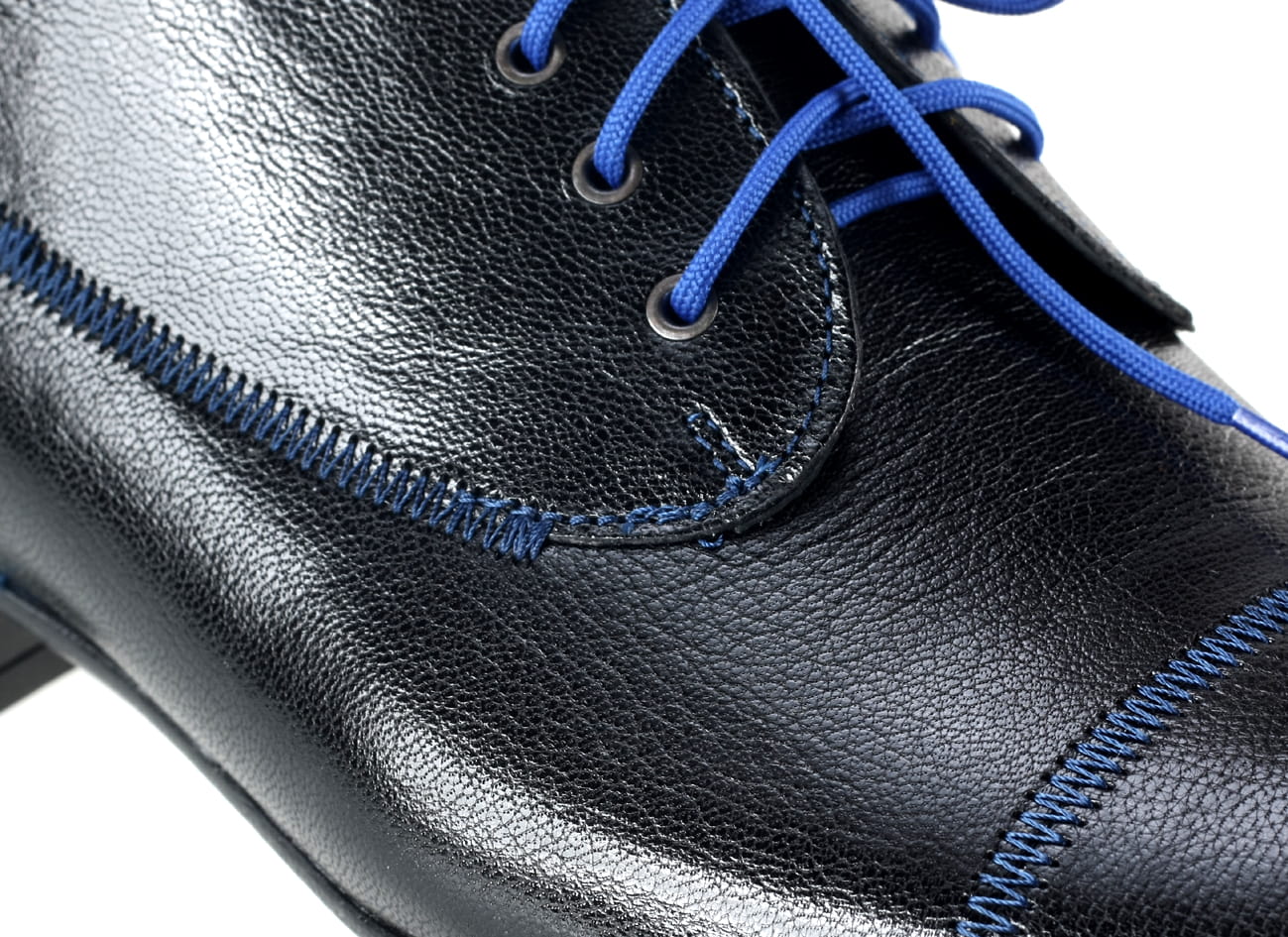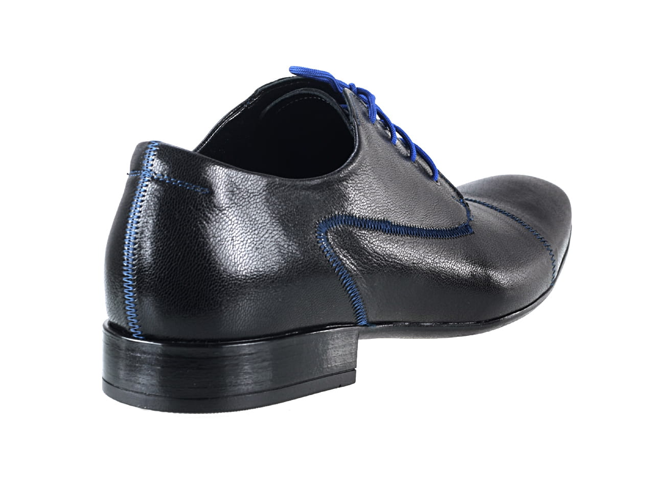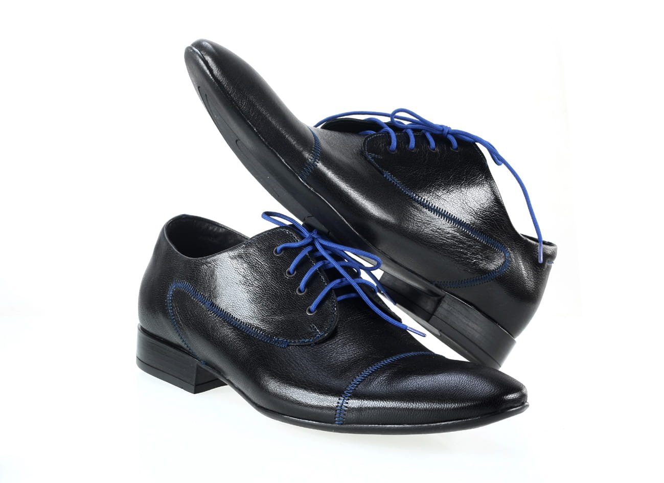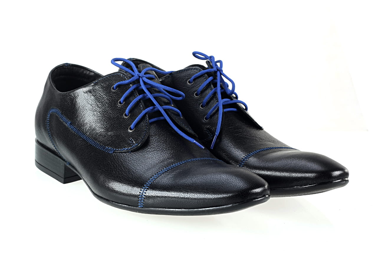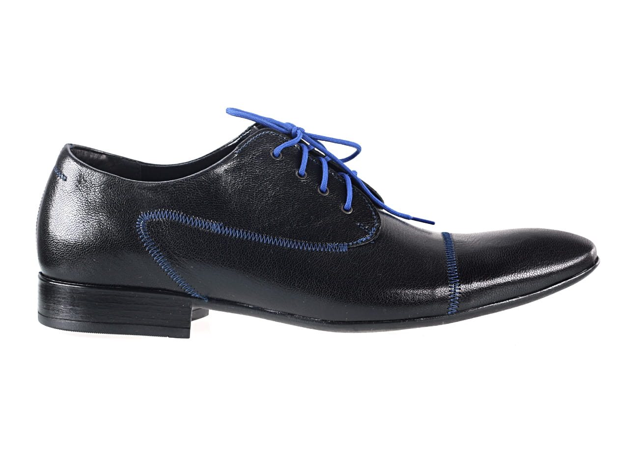 Obuwie męskie półbuty sznurowane man’s shoes kolorowe buty skórzane granatowe czarne skórkowe niebieskie lamówki unikat