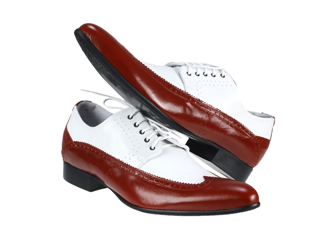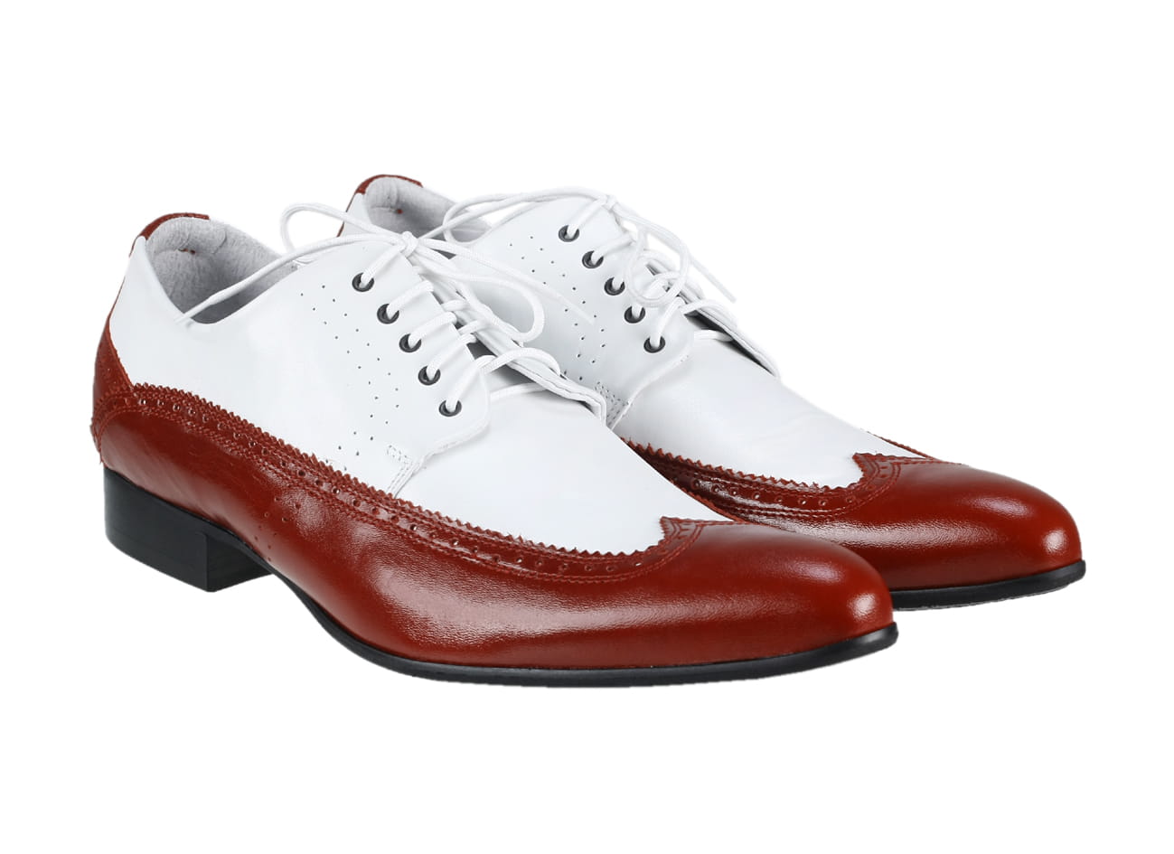 Obuwie męskie włoskie wizytowe szkoty czerwono-białe skórzane sznurowane [MODEL: 755B-11-13 Rosso/Bianco]