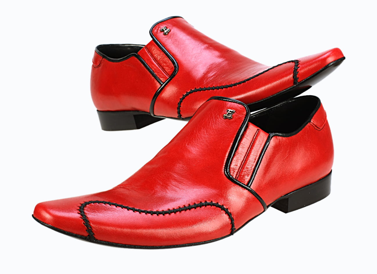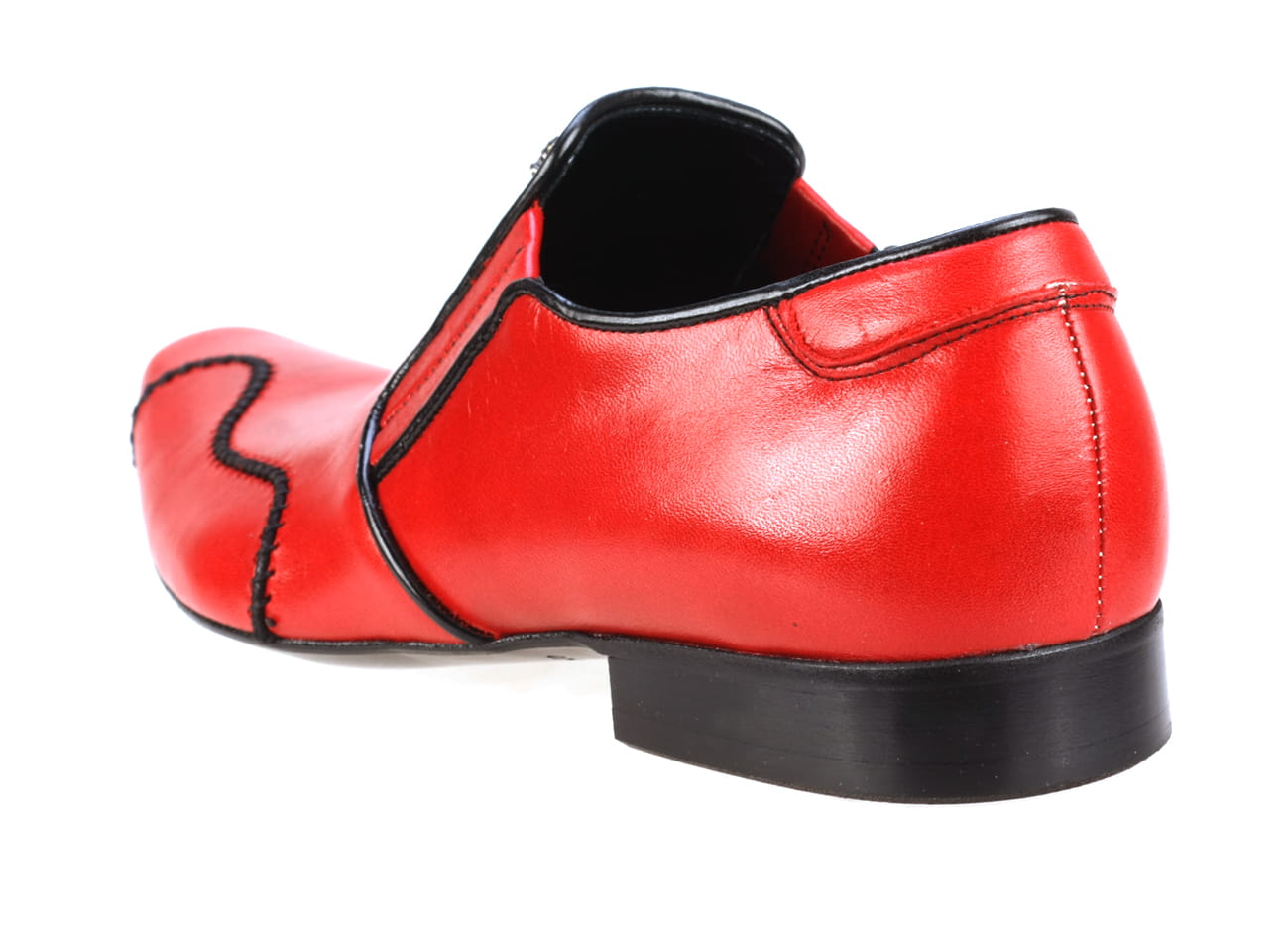 Obuwie wizytowe męskie wsuwane czerwone skórzane zdobienie szycie ręczne 38-46 [MODEL: 749b-11 Rosso euro]