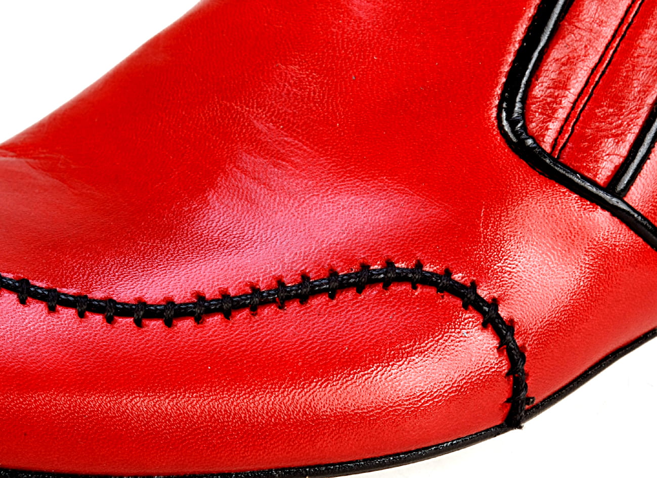 Zapytaj o Obuwie wizytowe męskie wsuwane czerwone skórzane zdobienie szycie ręczne 38-46 [MODEL: 749b-11 Rosso euro]