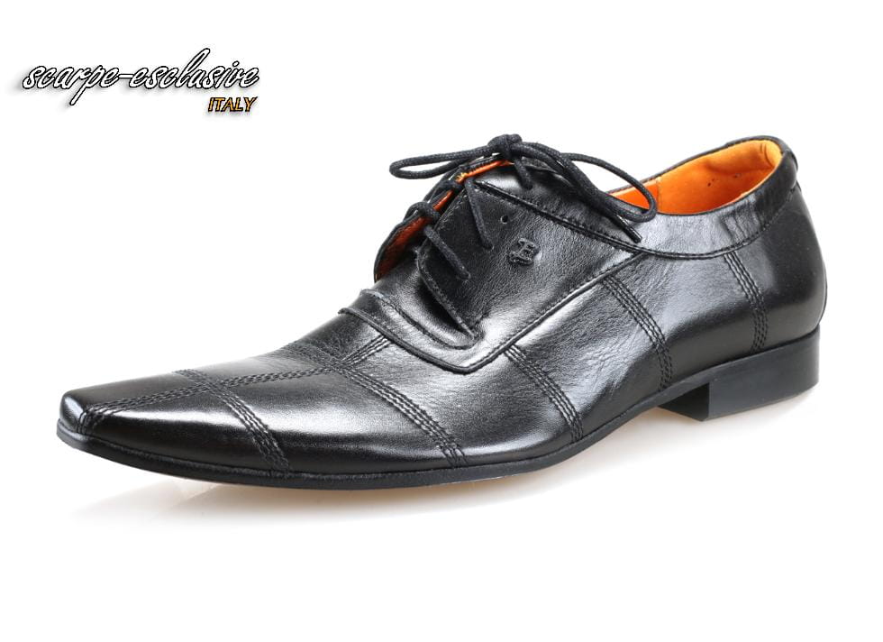 Obuwie wizytowe włoskie półbuty sznurowane czarne skórkowe [MODEL: 693-01 Nero euro]