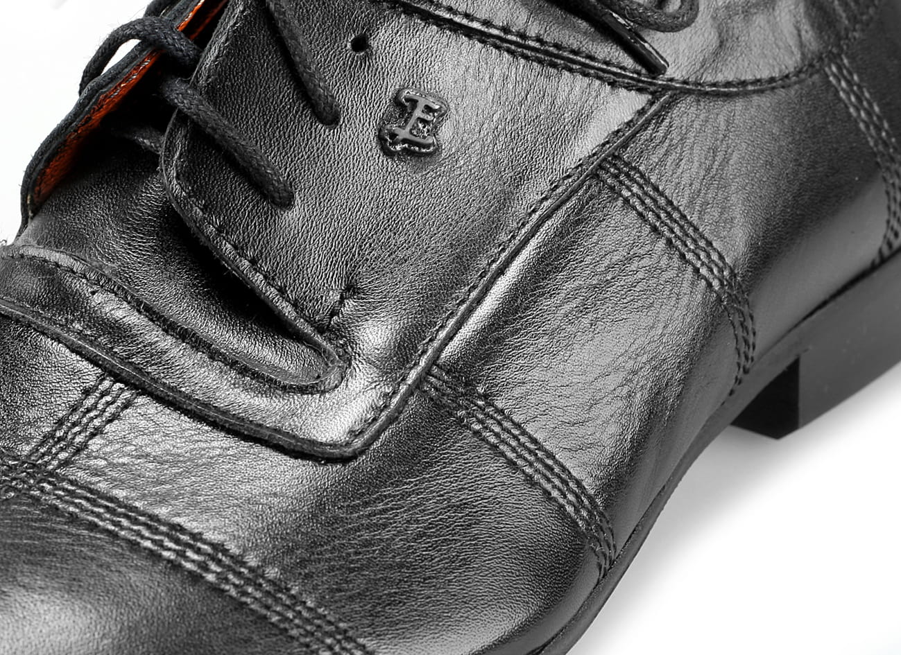 Obuwie sznurowane, wykonane z miękkiej skóry licowej.