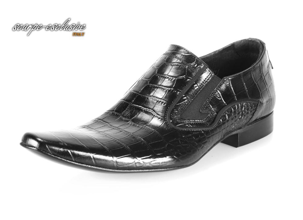 Zapytaj o Obuwie wizytowe wsuwane czarne wizytowe wytłaczane imitacja skóry węża [MODEL: 802-01 Nero cayman]