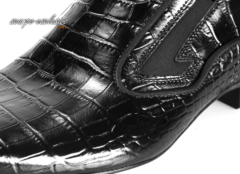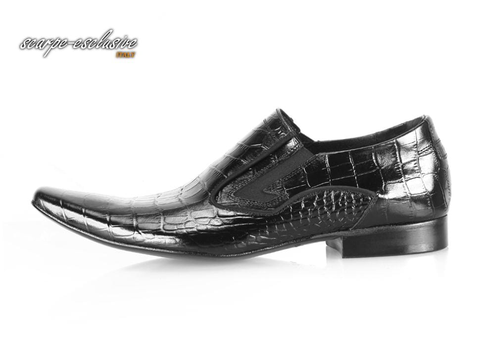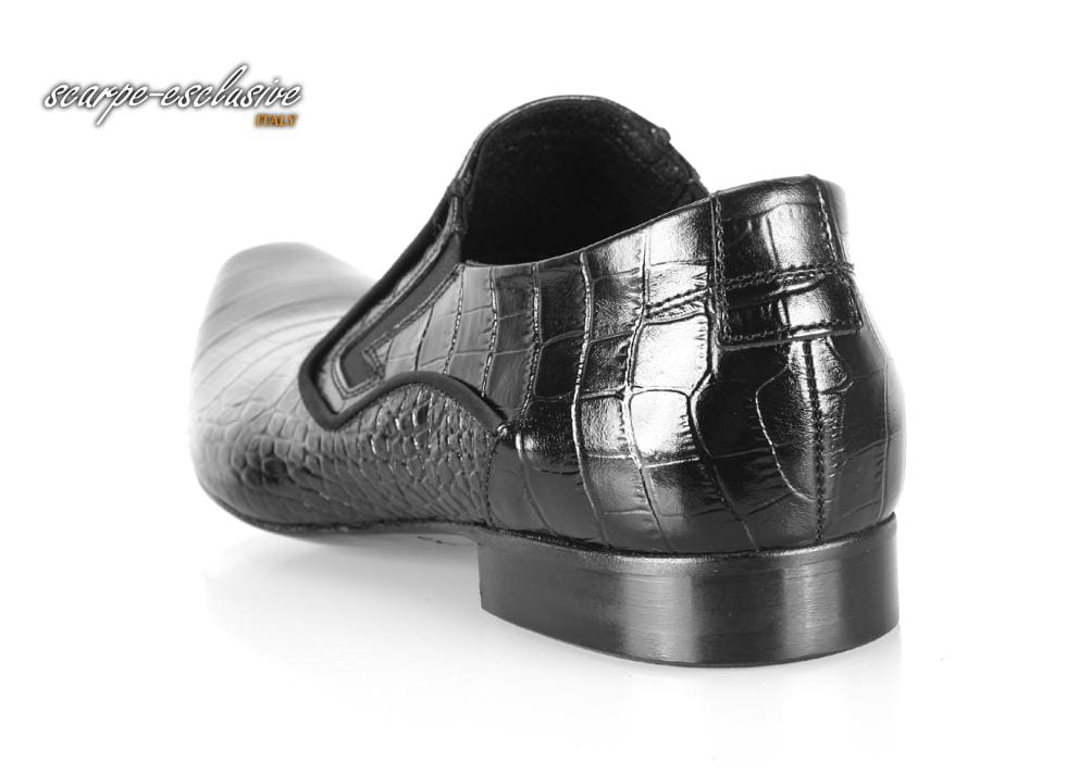 Obuwie wizytowe wsuwane czarne wizytowe wytłaczane imitacja skóry węża [MODEL: 802-01 Nero cayman]