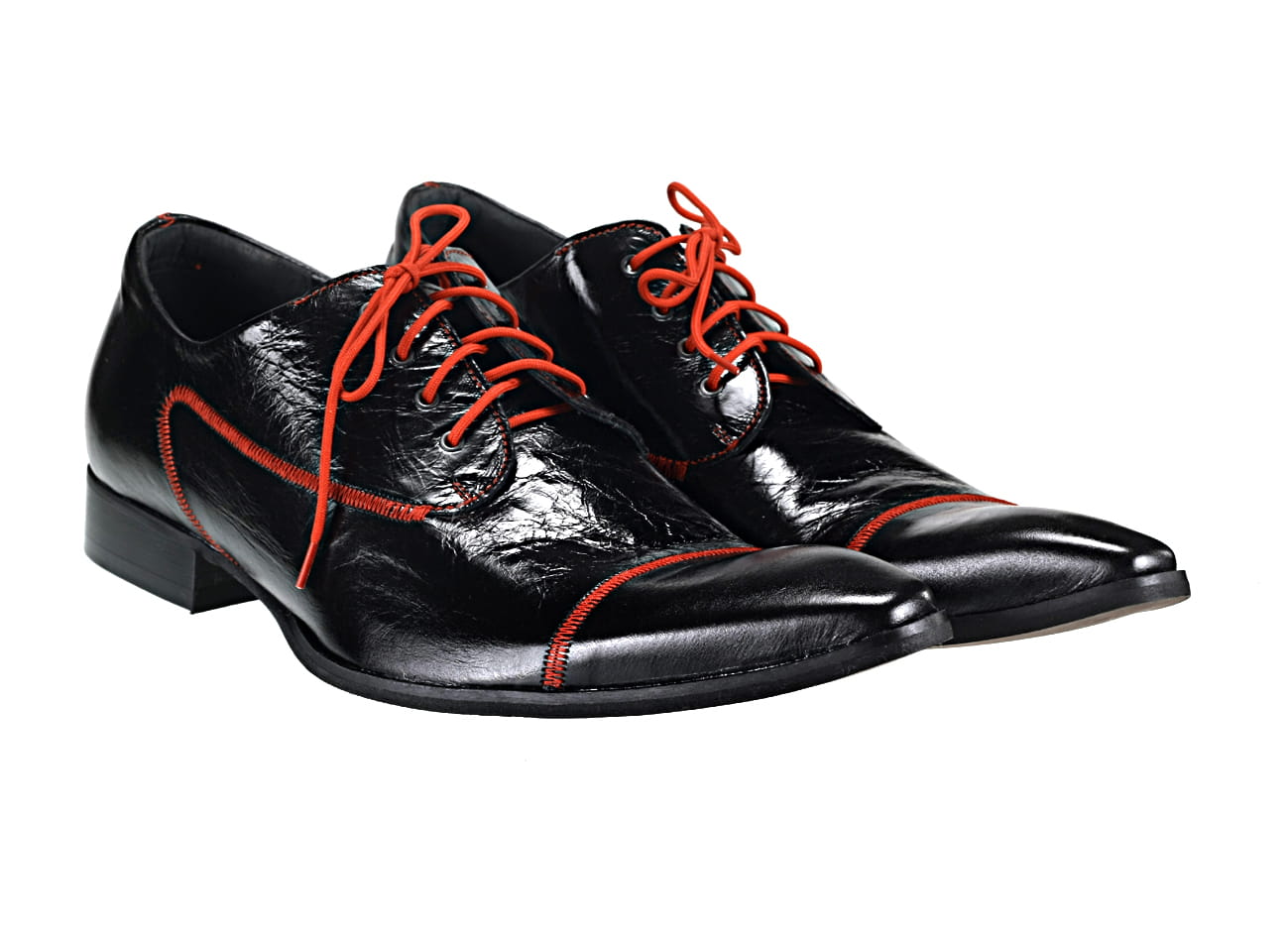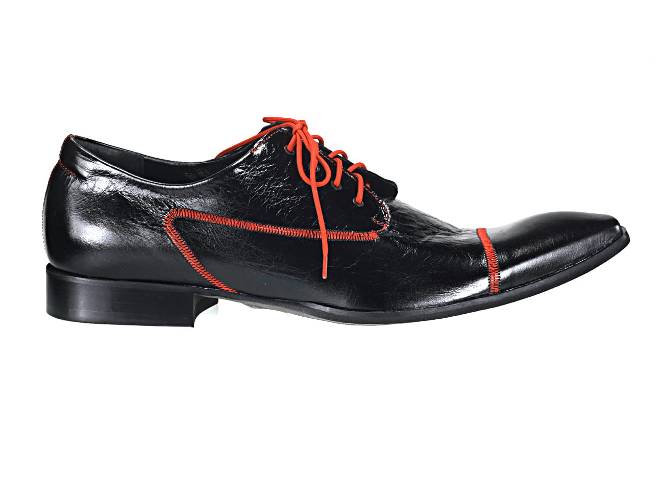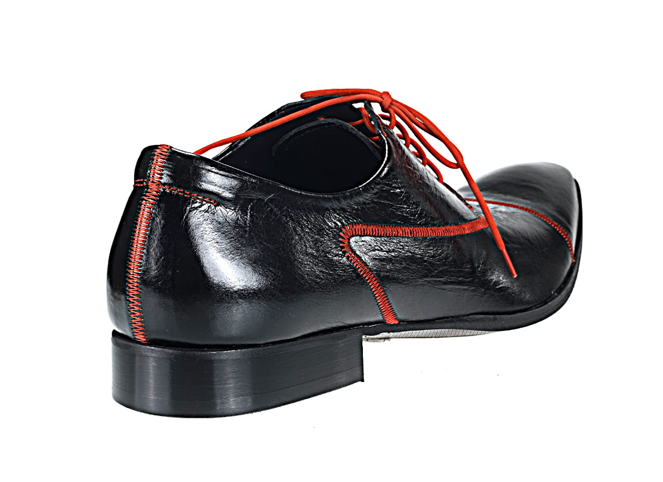Zapytaj o Obuwie włoskie męskie wizytowe skórzane czarne czerwona sznurówka [MODEL: 906C-01 Nero riva]]
