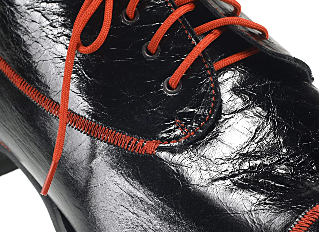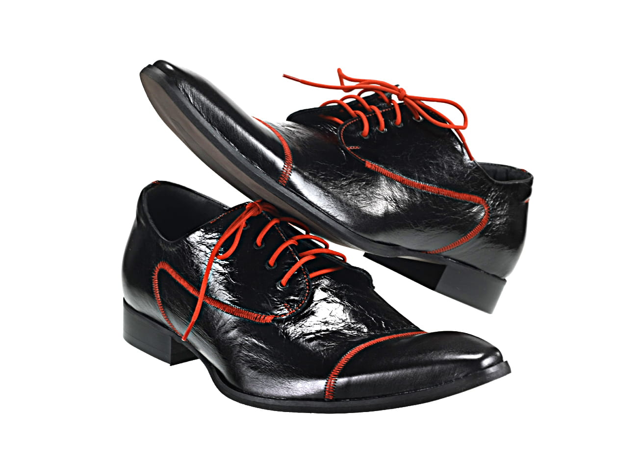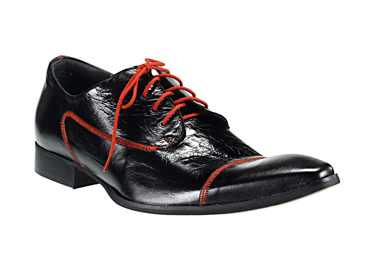 Zapytaj o Obuwie włoskie męskie wizytowe skórzane czarne czerwona sznurówka [MODEL: 906C-01 Nero riva]]