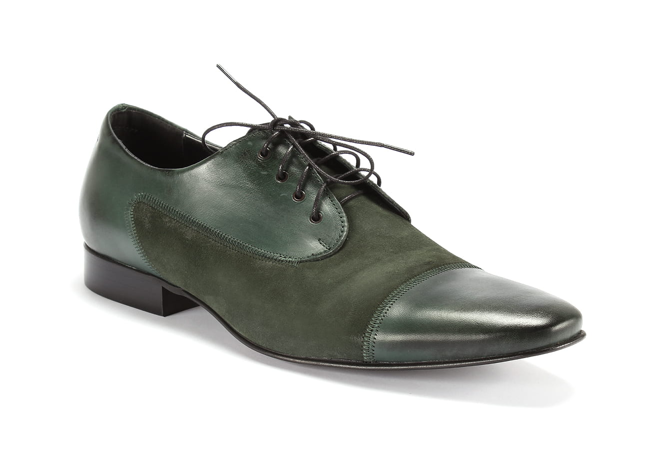 Zapytaj o Obuwie włoskie sznurowane wizytowe męskie skórzane zamszowe zielone [MODEL: 1069-90 Verde baflo/camoscio]