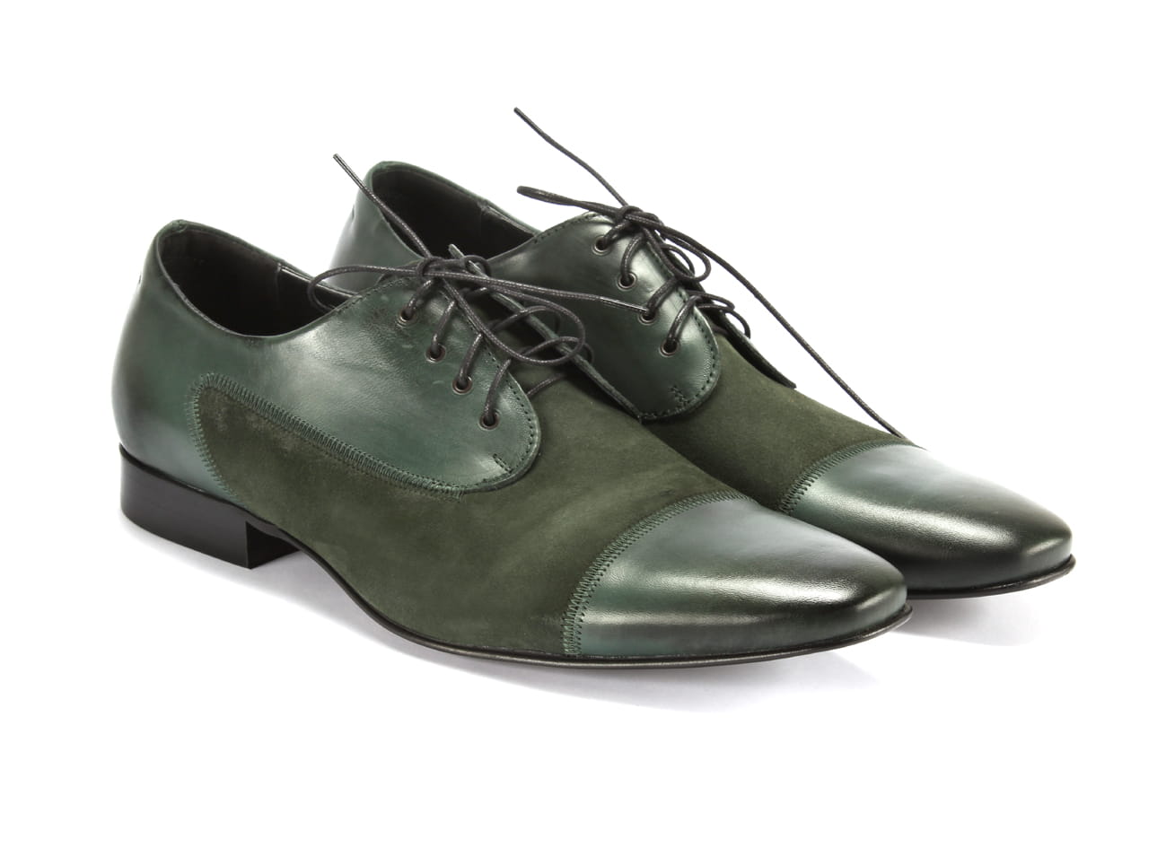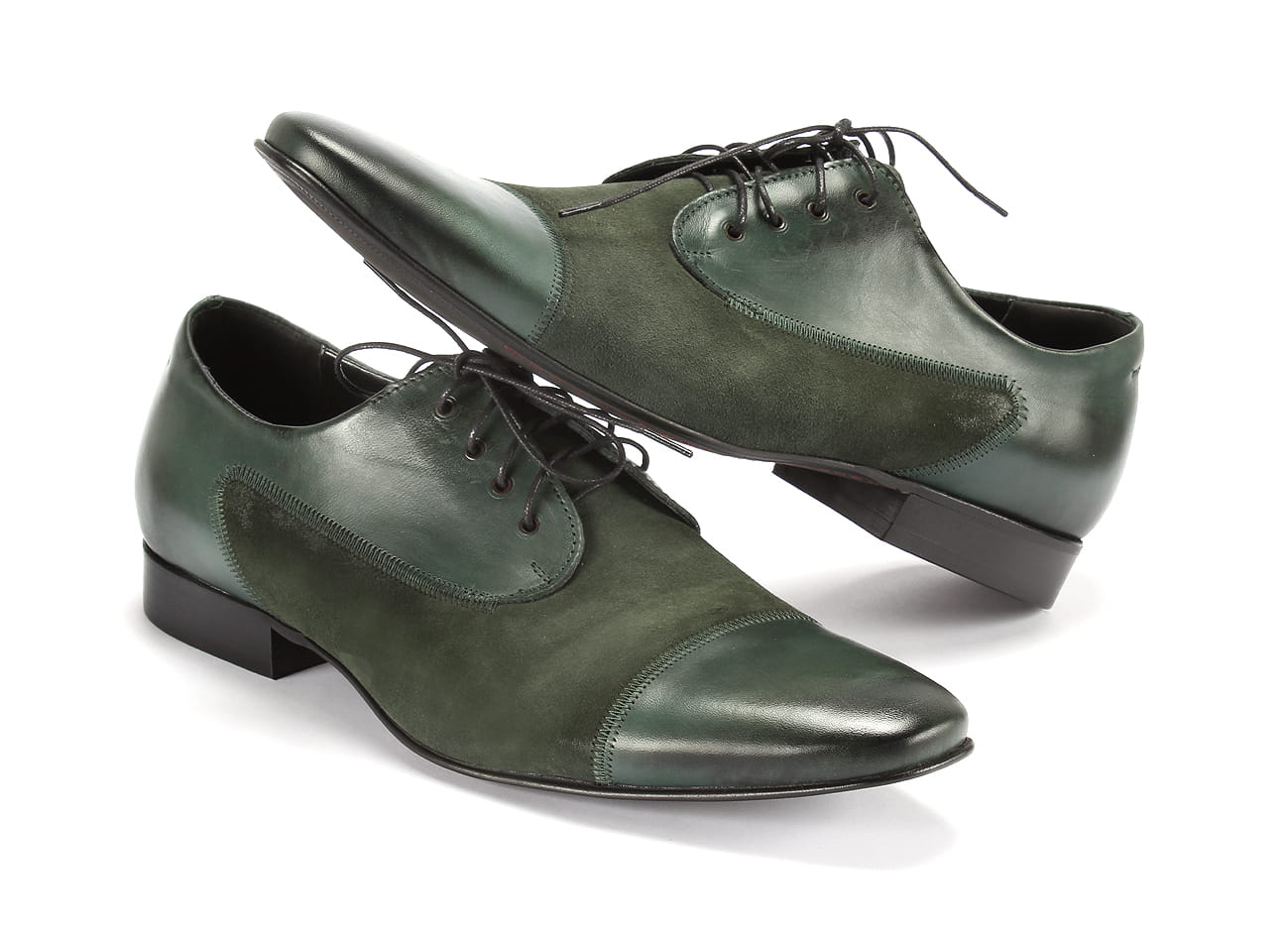 Obuwie włoskie sznurowane wizytowe męskie skórzane zamszowe zielone [MODEL: 1069-90 Verde baflo/camoscio]