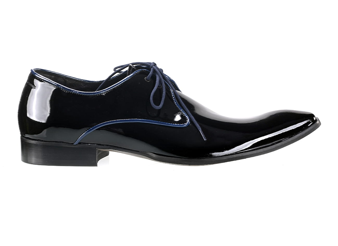 Zapytaj o Obuwie włoskie wizytowe sznurowane lakierki czarne skóra [MODEL: 823N-01 Nero vernice/blue]