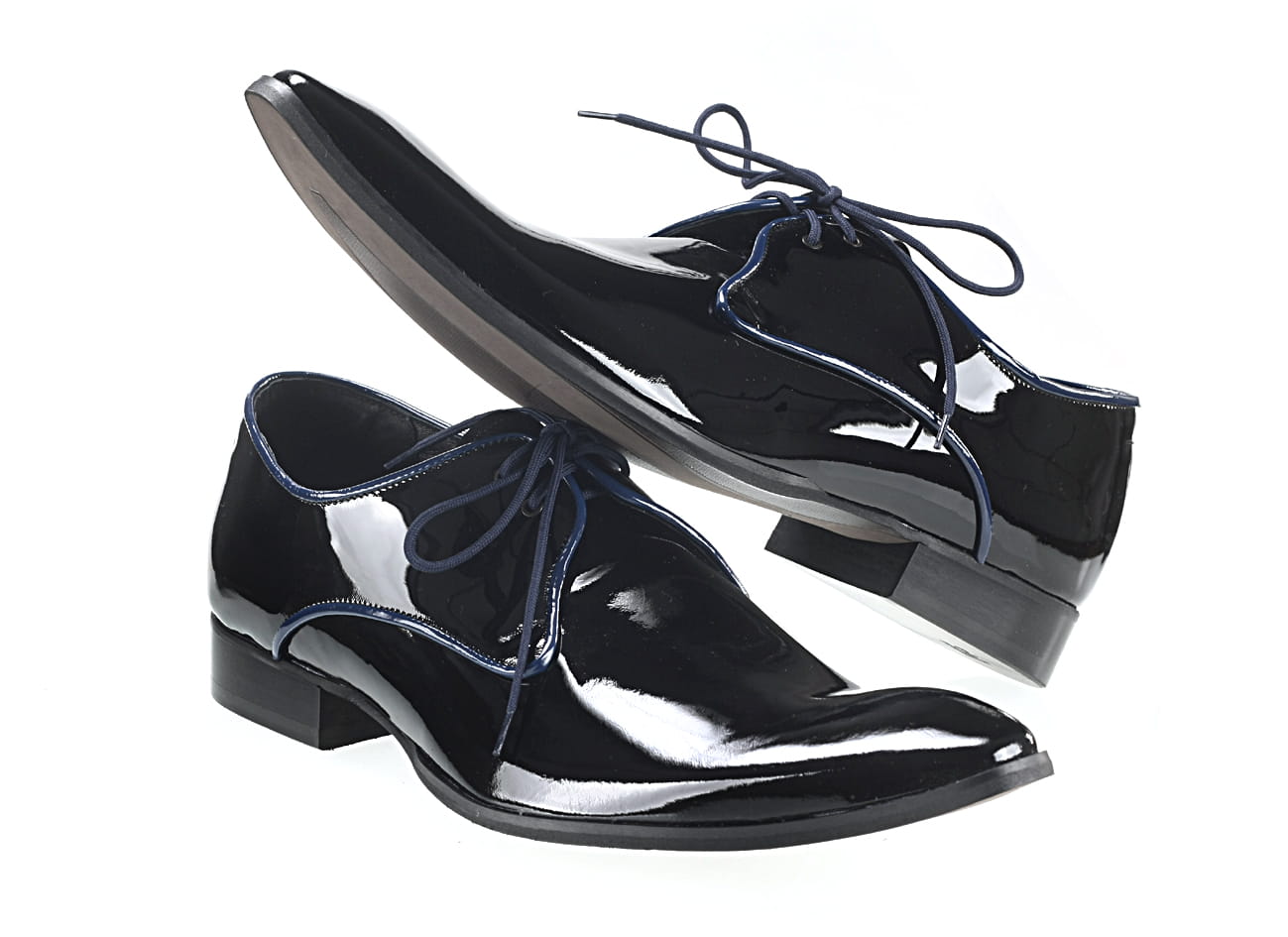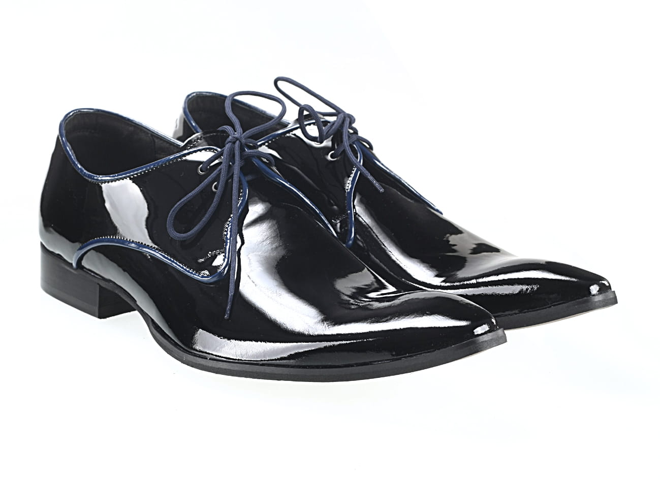 Obuwie włoskie wizytowe sznurowane lakierki czarne skóra [MODEL: 823N-01 Nero vernice/blue]