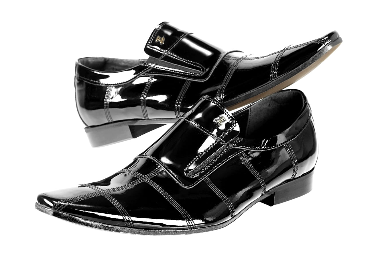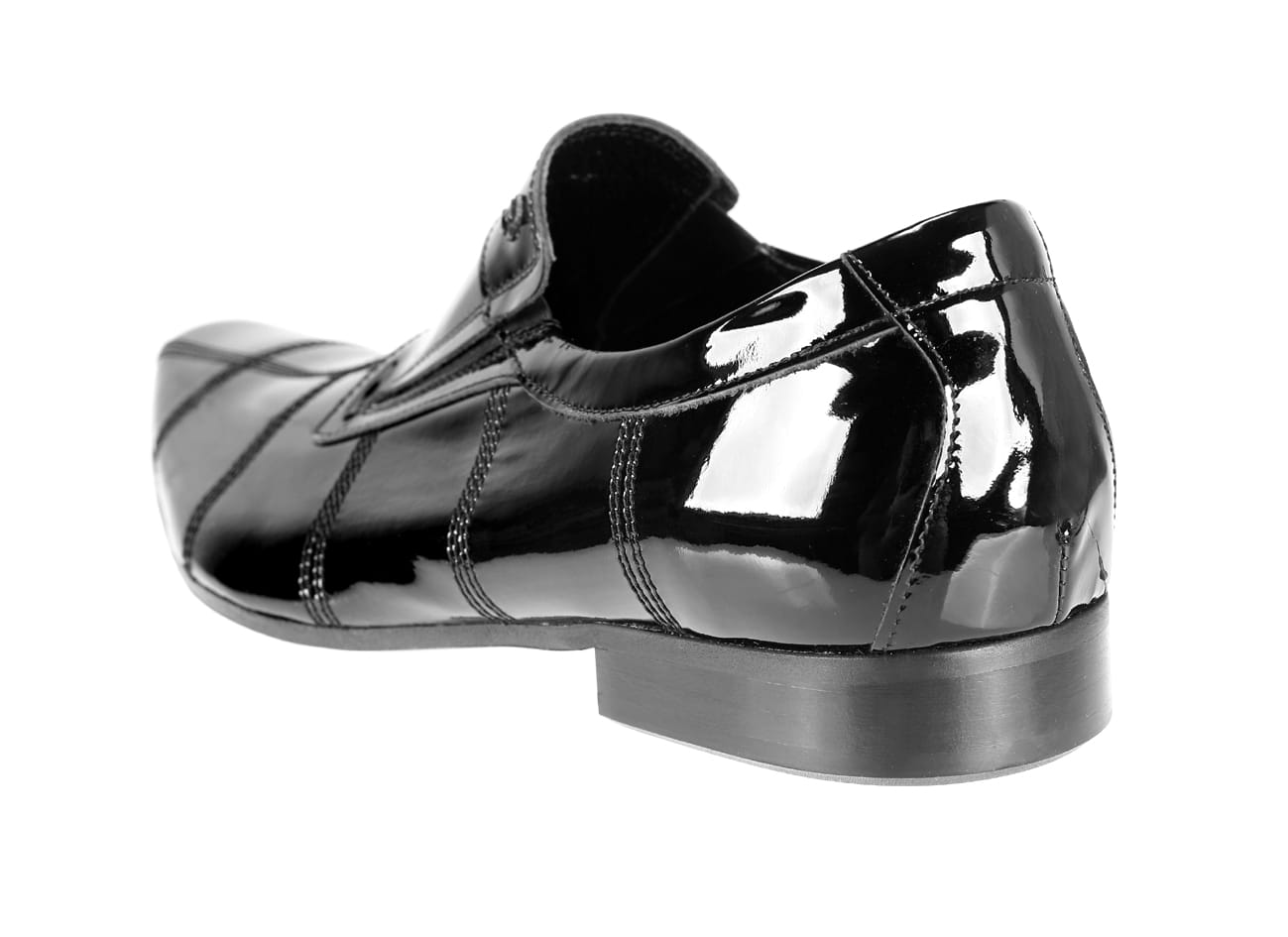 Zapytaj o Odważne półbuty męskie wizytowe wsuwane czarne skórkowe lakierki 38-46 [MODEL:680-01 nero vernice]