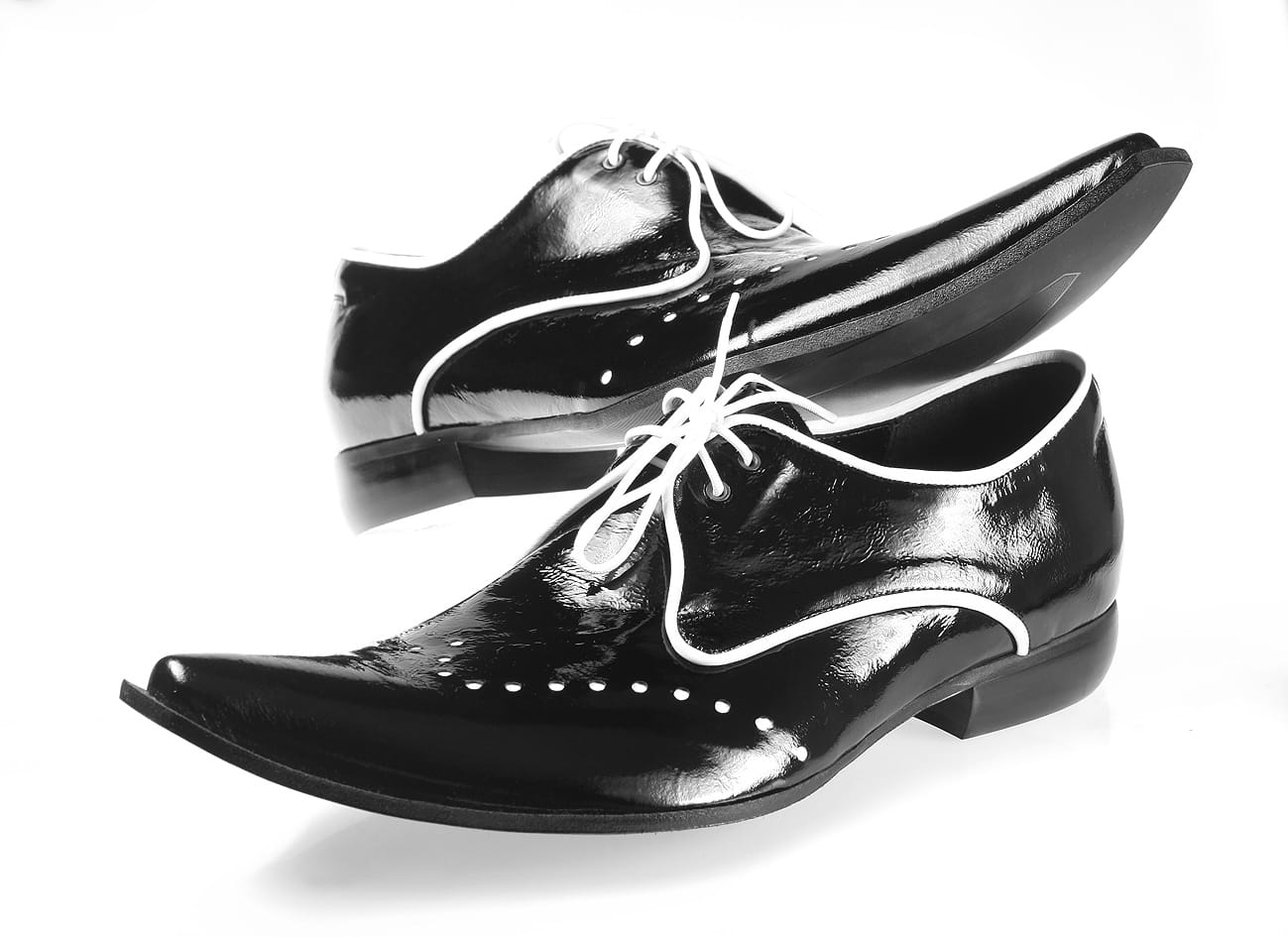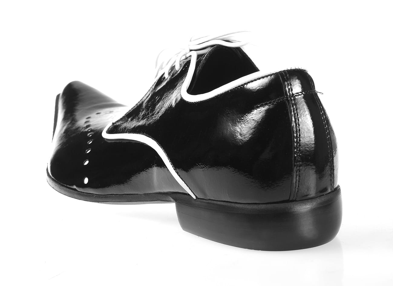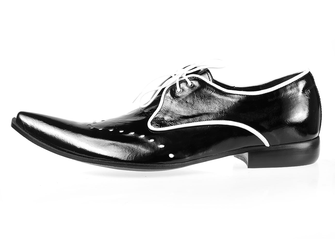 Zapytaj o Odważne półbuty wizytowe sznurowane męskie skórzane szpic [MODEL:797-01 nero vernice bianco]