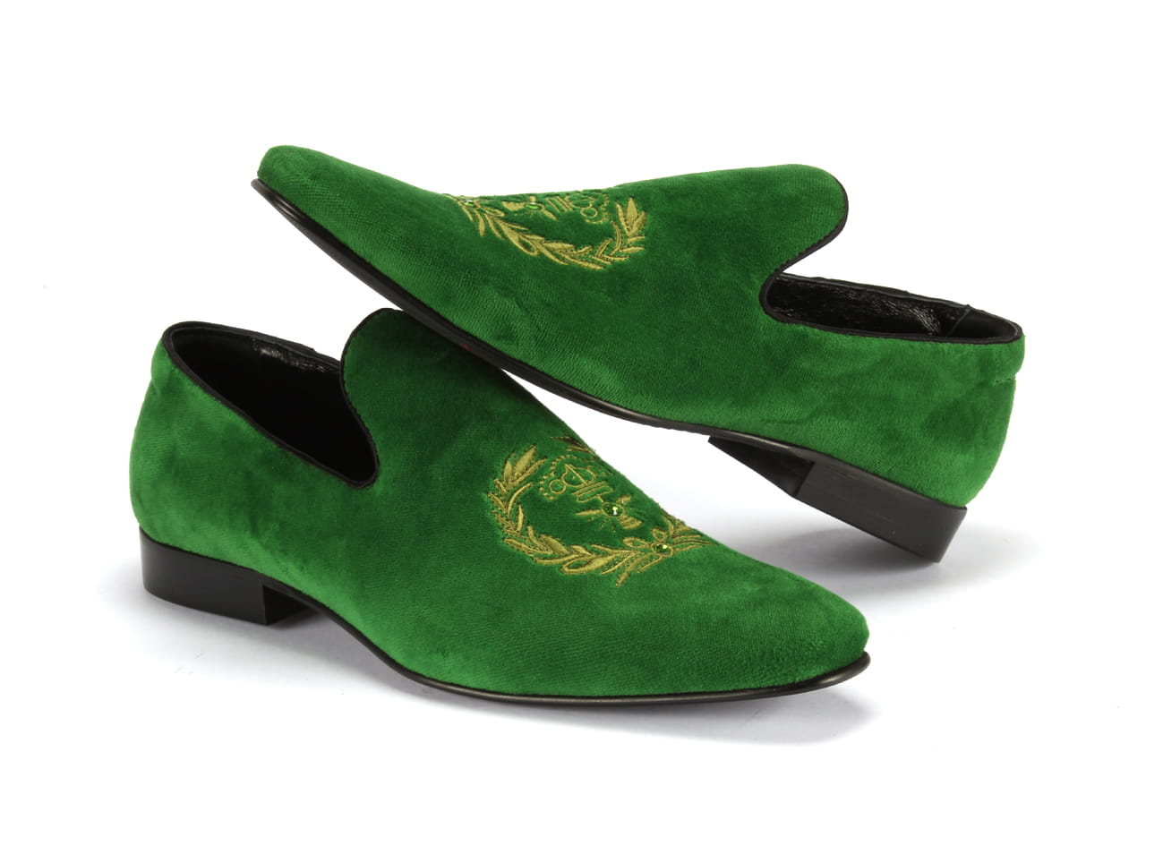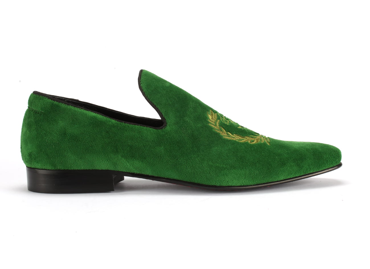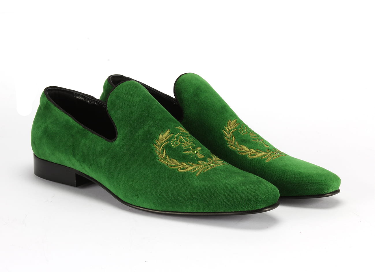 Odważne wsuwane półbuty wizytowe lordsy męskie aksamit [MODEL: 1217-97 Green]