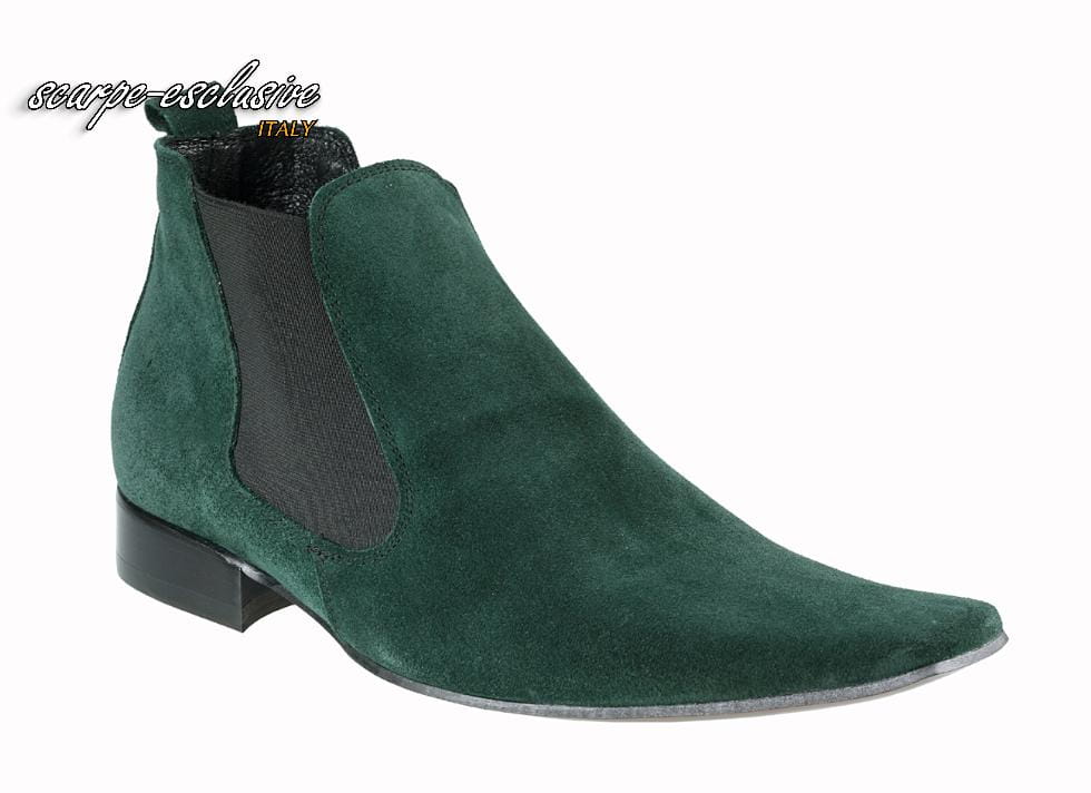 Obuwie póbuty botki męskie skórzane wsuwane zielone sztyblety wizytowe skóra zamsz
