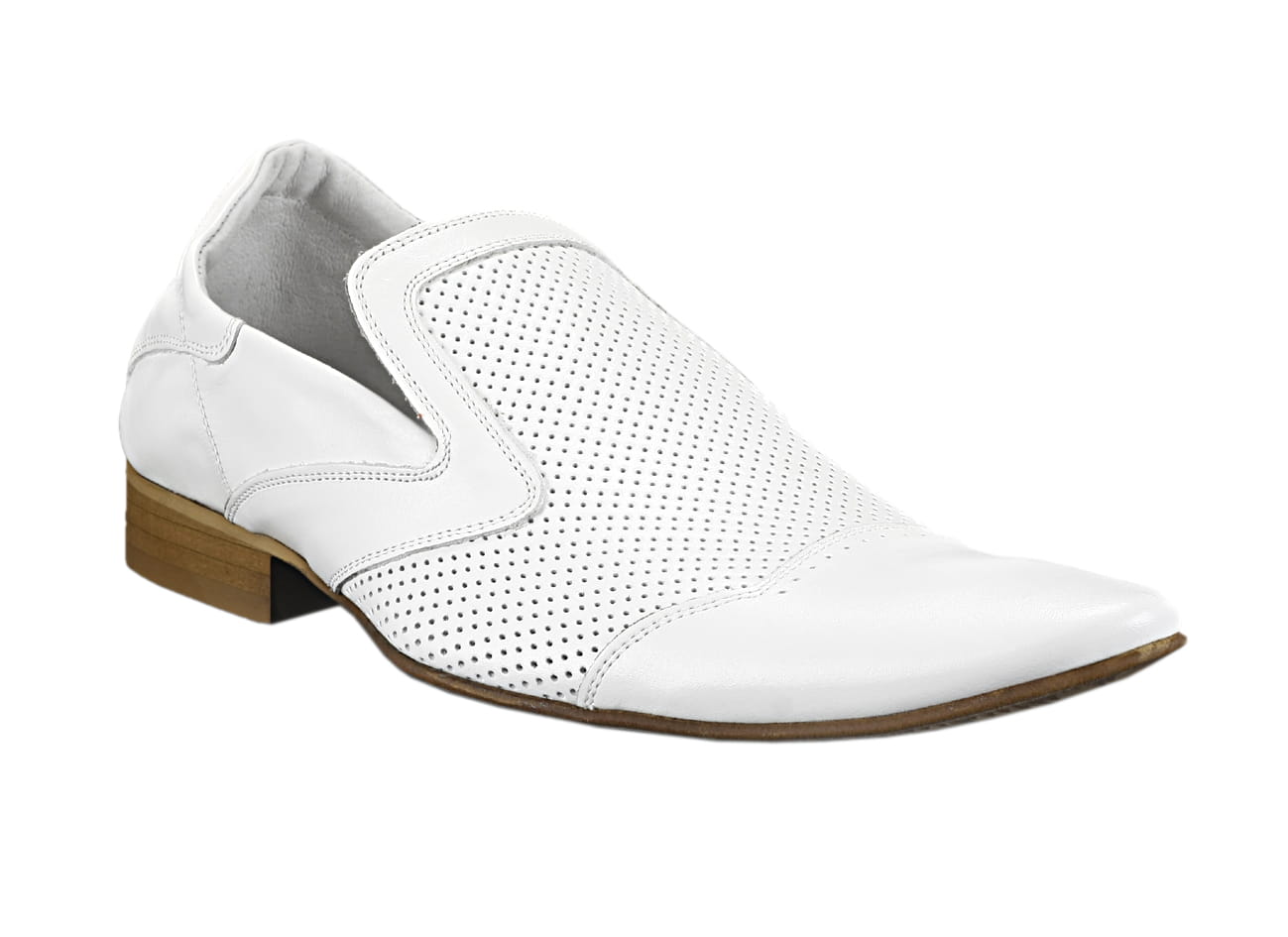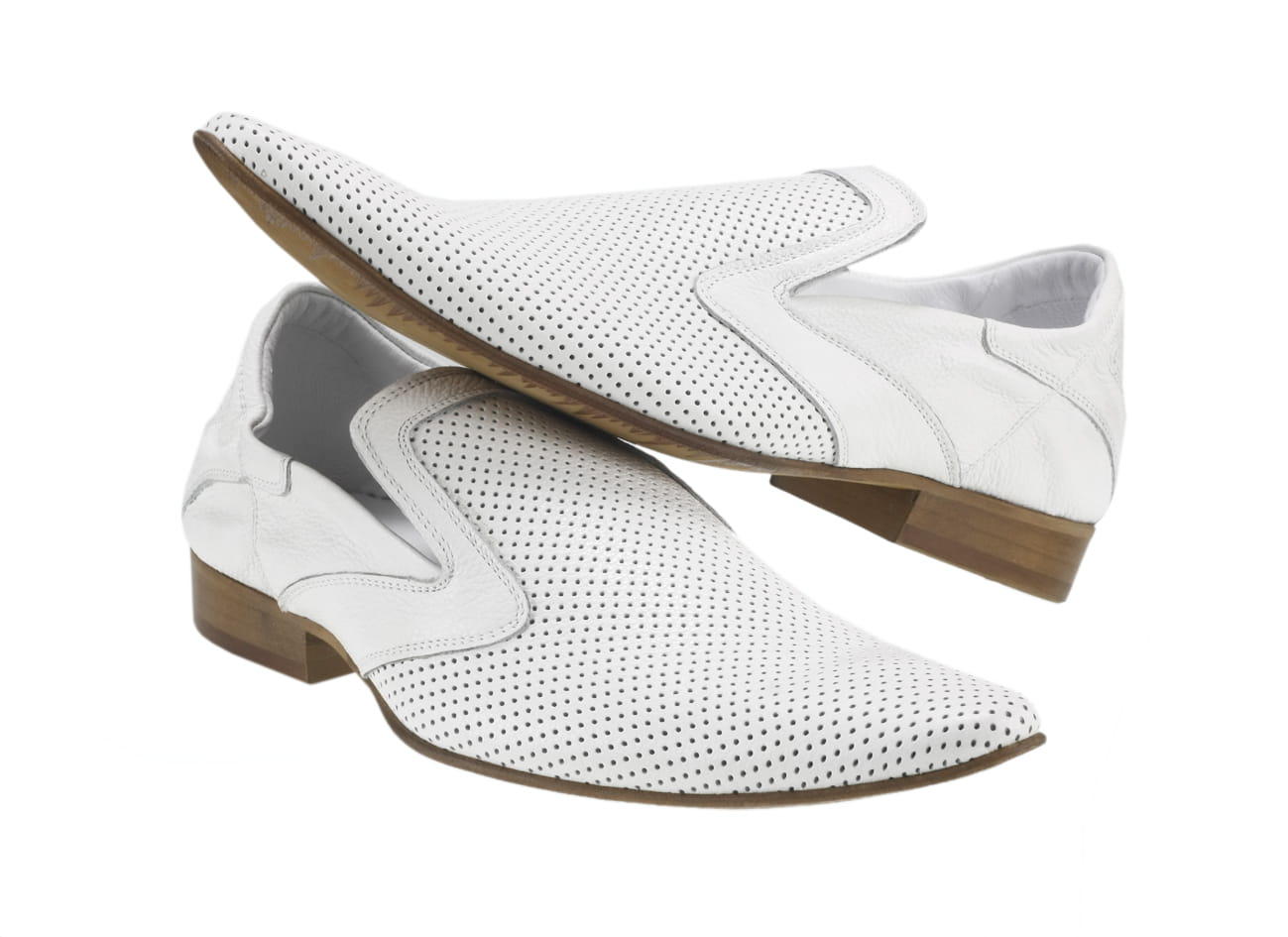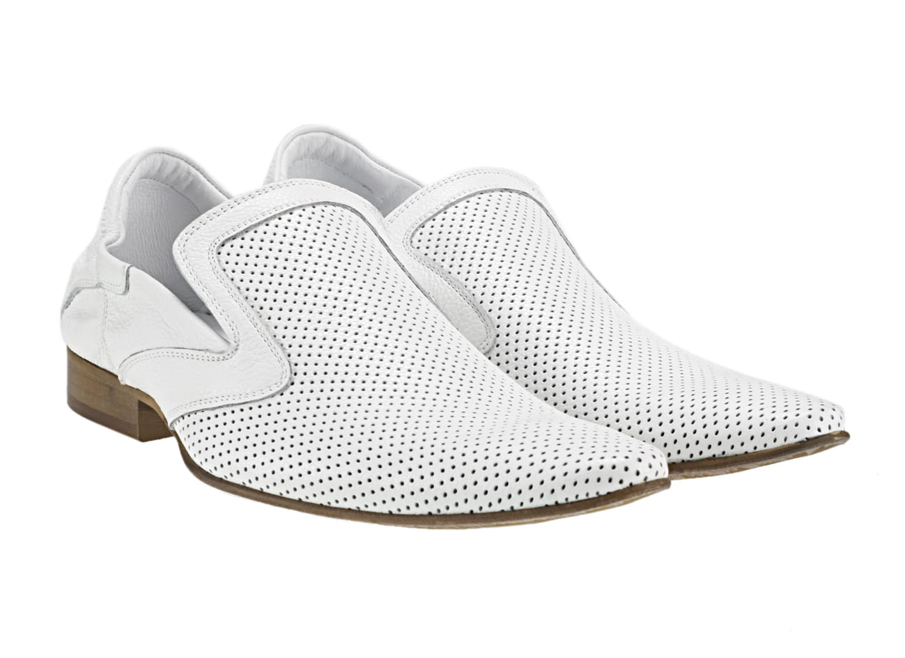 Półbuty męskie białe skórzane klapki dziurki lato [MODEL:656-13 riva]