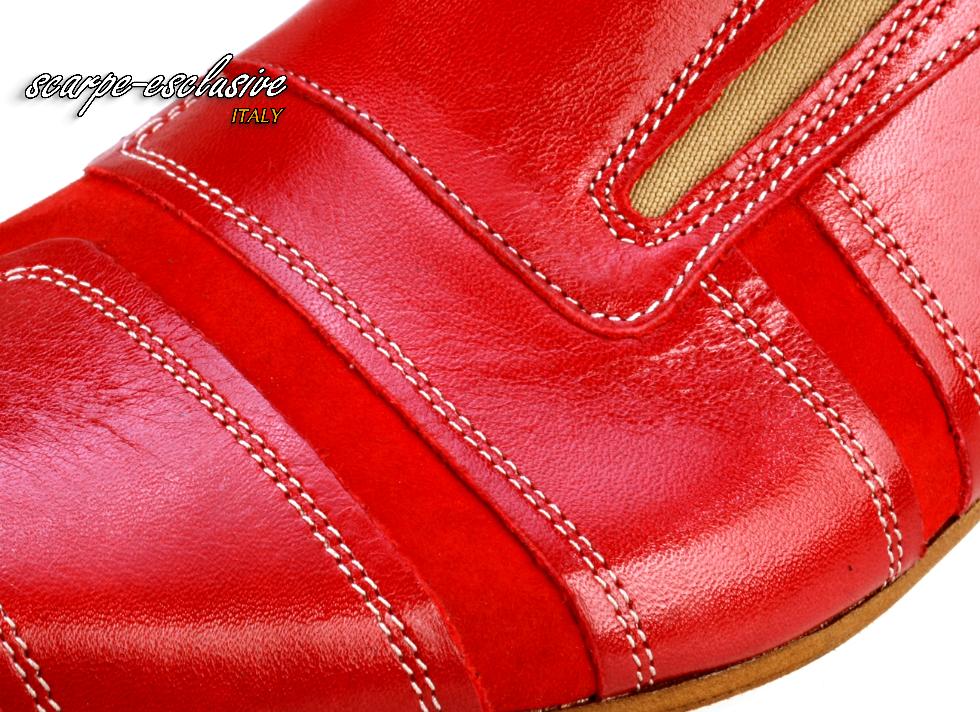 Obuwie męski buty półbuty wizytowe czerwone wsuwane zamsz skórkowe