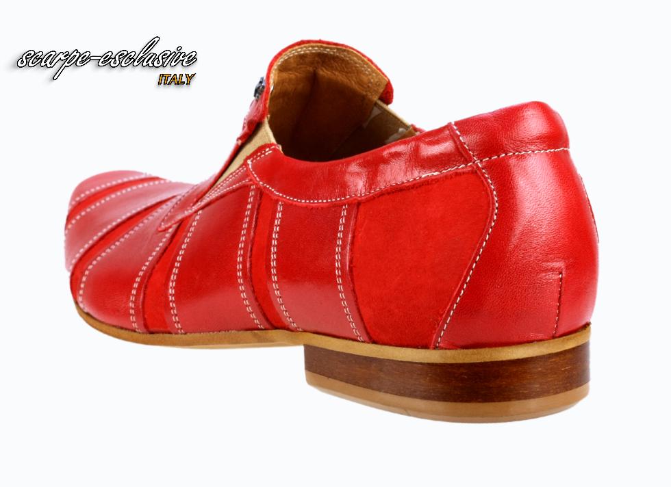 Półbuty męskie wizytowe czerwone wsuwane zamsz skóra [MODEL:709-11 rosso euro]