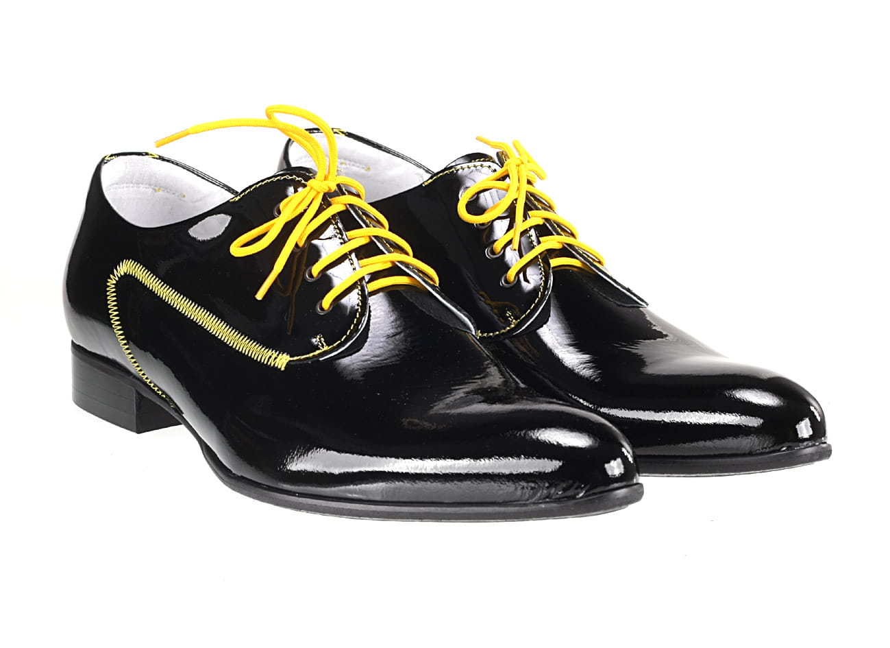 Buty półbuty męskie wizytowe obuwie buty męskie oxford derby man’s shoes czarne lakierki sznurowane żółte