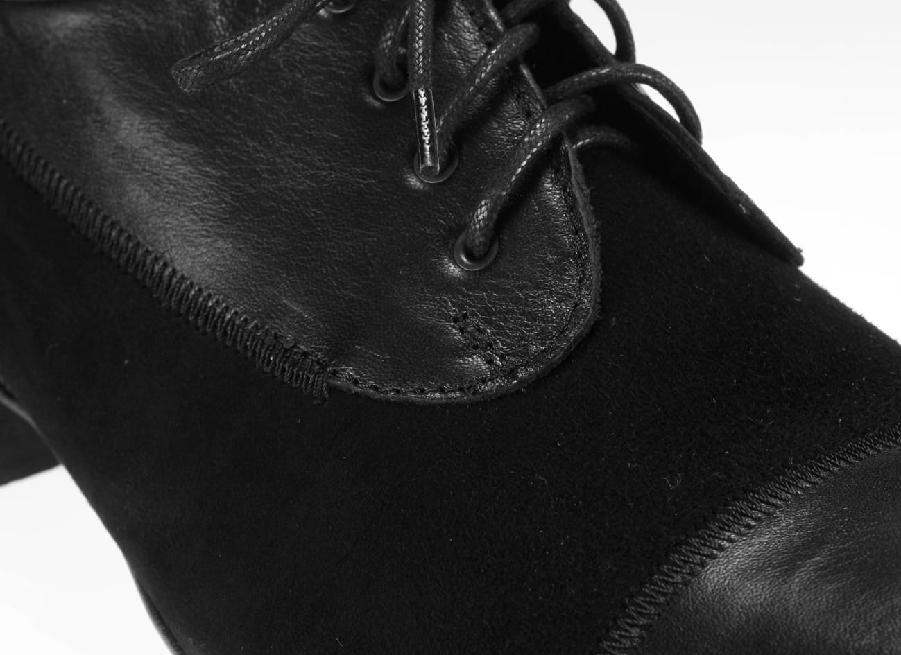 Obuwie sznurowane wykonane z miękkiej skóry bydlęcej w połączniu ze skórą typu zamsz