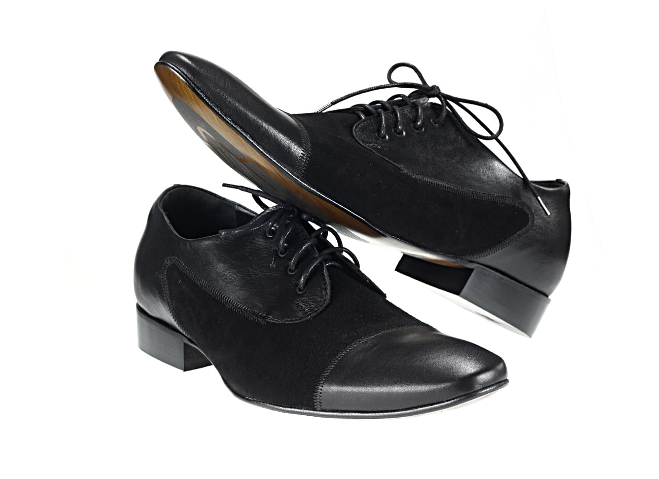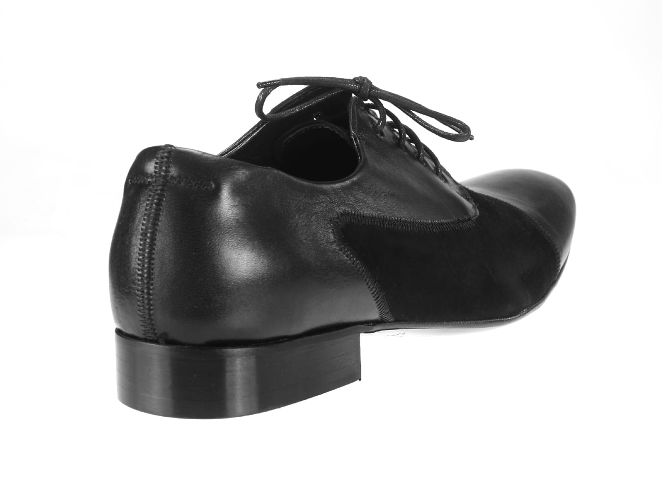 Półbuty męskie wizytowe skórzane męskie derby oxford sznurowane czarne zamsz 38-46 [MODEL: 711-01 Nero euro+camoscio]