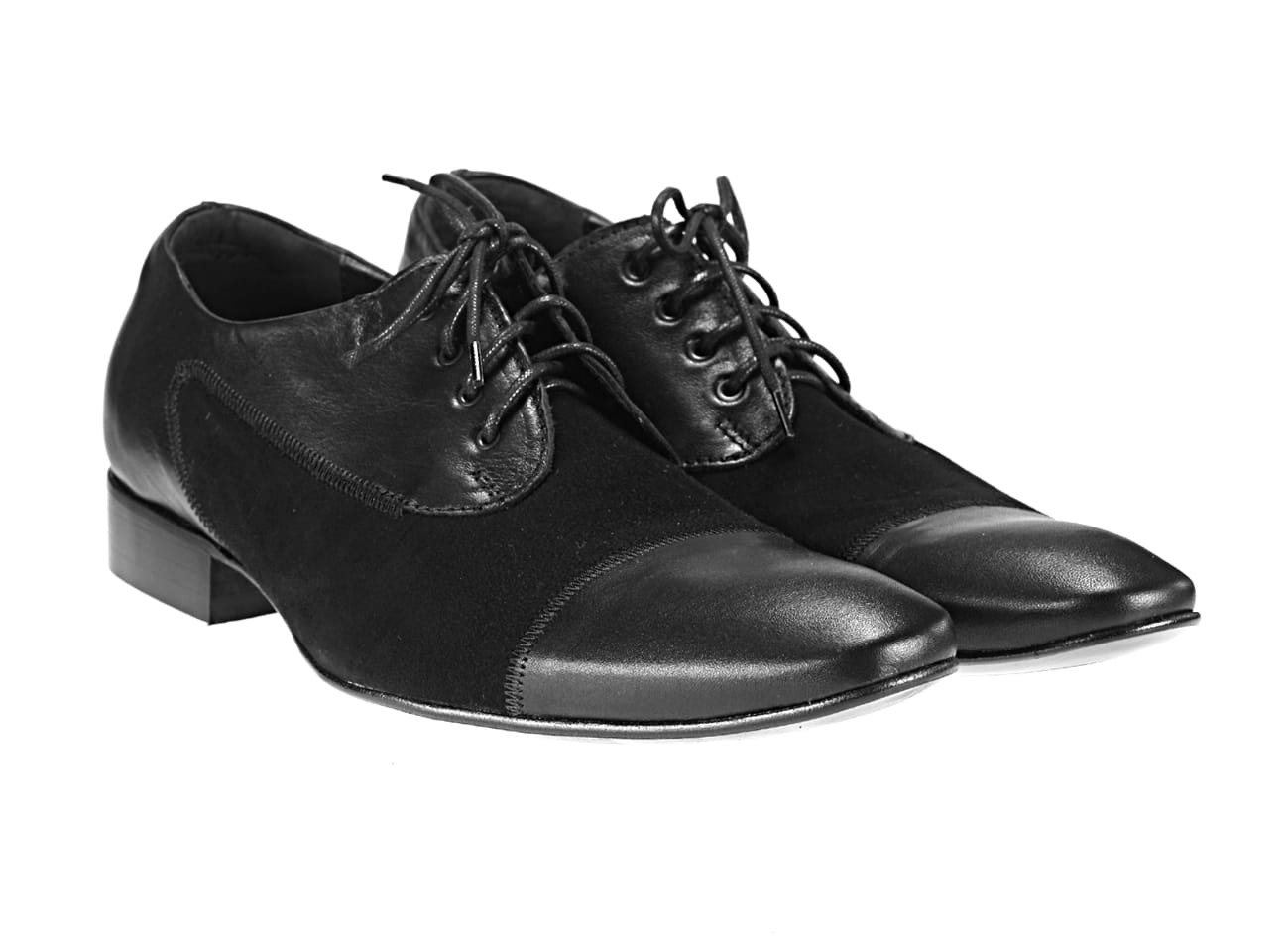 Zapytaj o Półbuty męskie wizytowe skórzane męskie derby oxford sznurowane czarne zamsz 38-46 [MODEL: 711-01 Nero euro+camoscio]