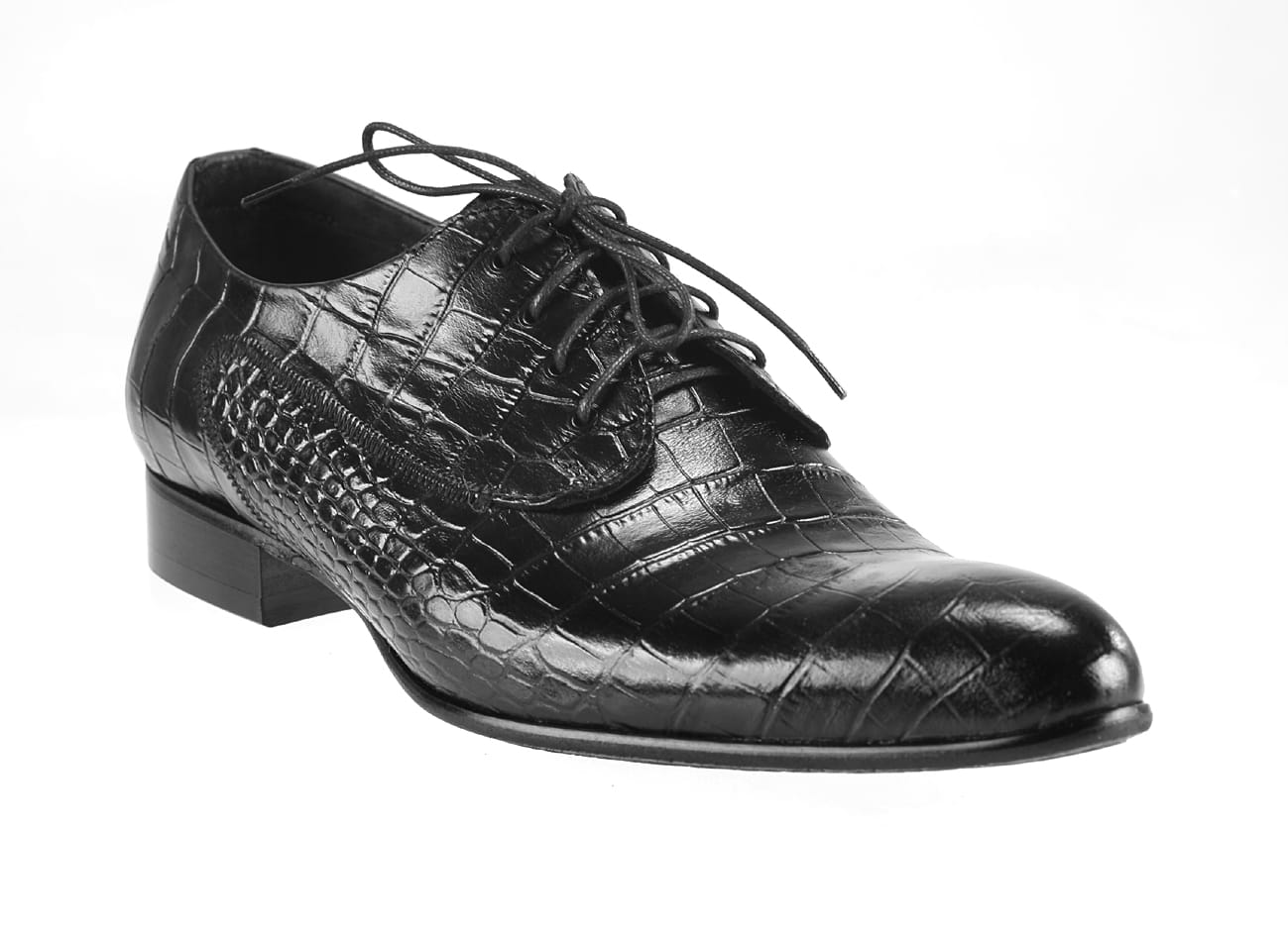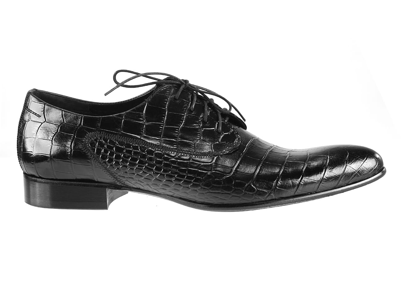 Półbuty męskie wizytowe sznurowane czarne imitacja węża skórkowe [MODEL: 820-01 Nero cayman]