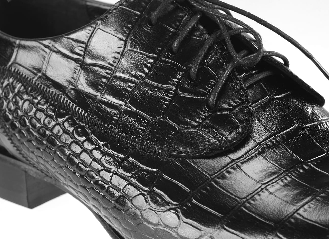 Obuwie sznurowane, wykonane ze skóry bydlęcej-wytłaczanej.