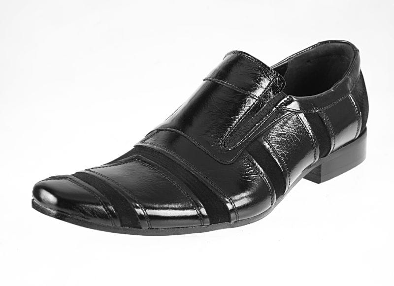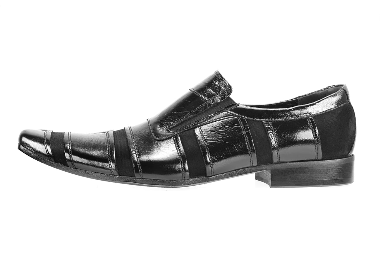 Buty obuwie męskie półbuty wizytowe wsuwane skórzane zamsz czarne