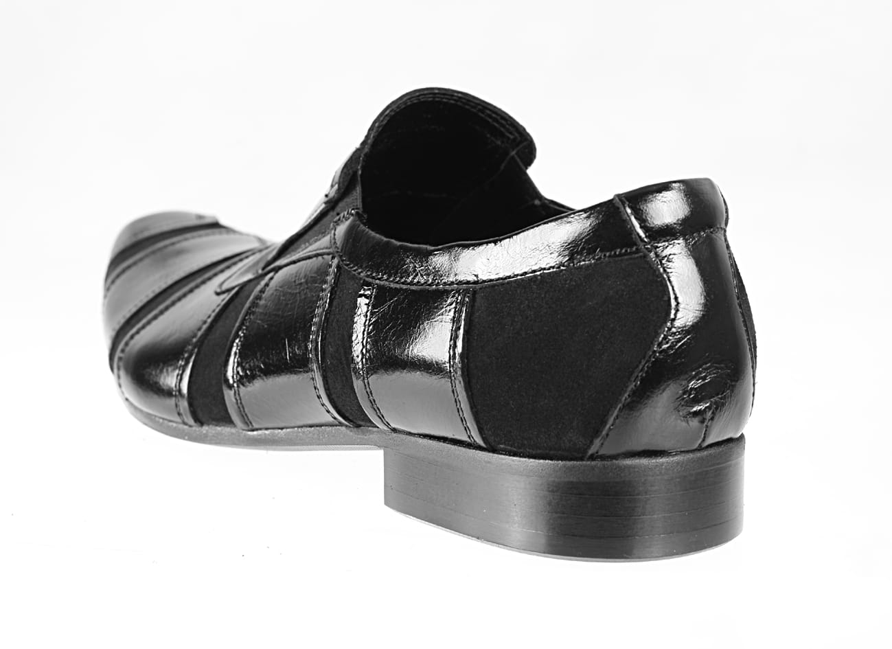 Półbuty męskie wizytowe wsuwane skórzane zamsz czarne [MODEL:709-01 nero camoscio+riva]
